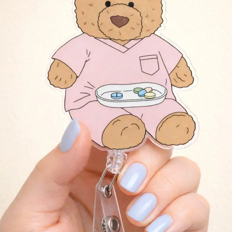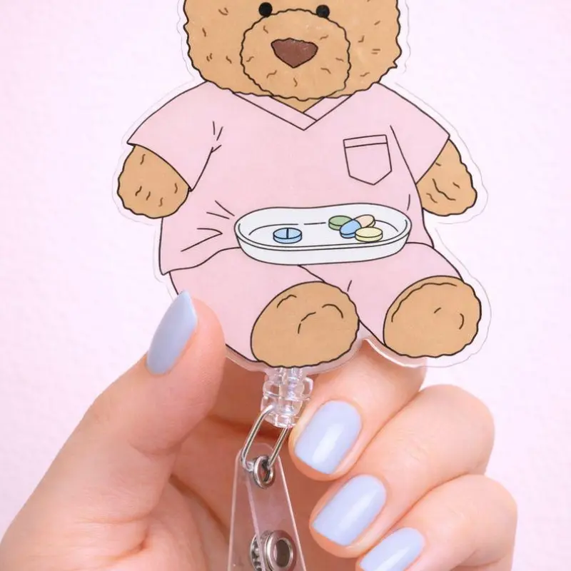 5. Teddy Bear Nurse Badge Reel | Kawaii Acrylic ID Holder | Retractable Badge