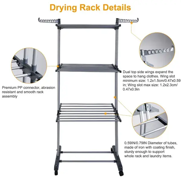 Are you tired of clothes piling up and taking a long time to dry? Let’s take a look at this three-tier rolling clothes drying rack—this smart, sturdy, and flexible drying rack makes laundry day incredibly easy!
