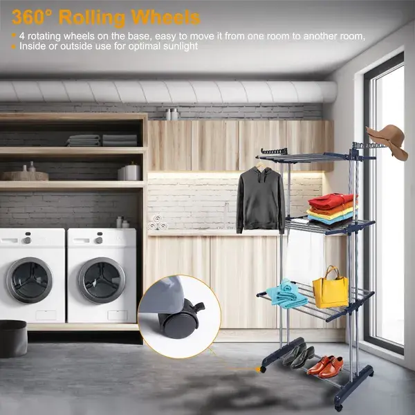 Three-tier rolling drying rack — your ultimate space-saving laundry solution!