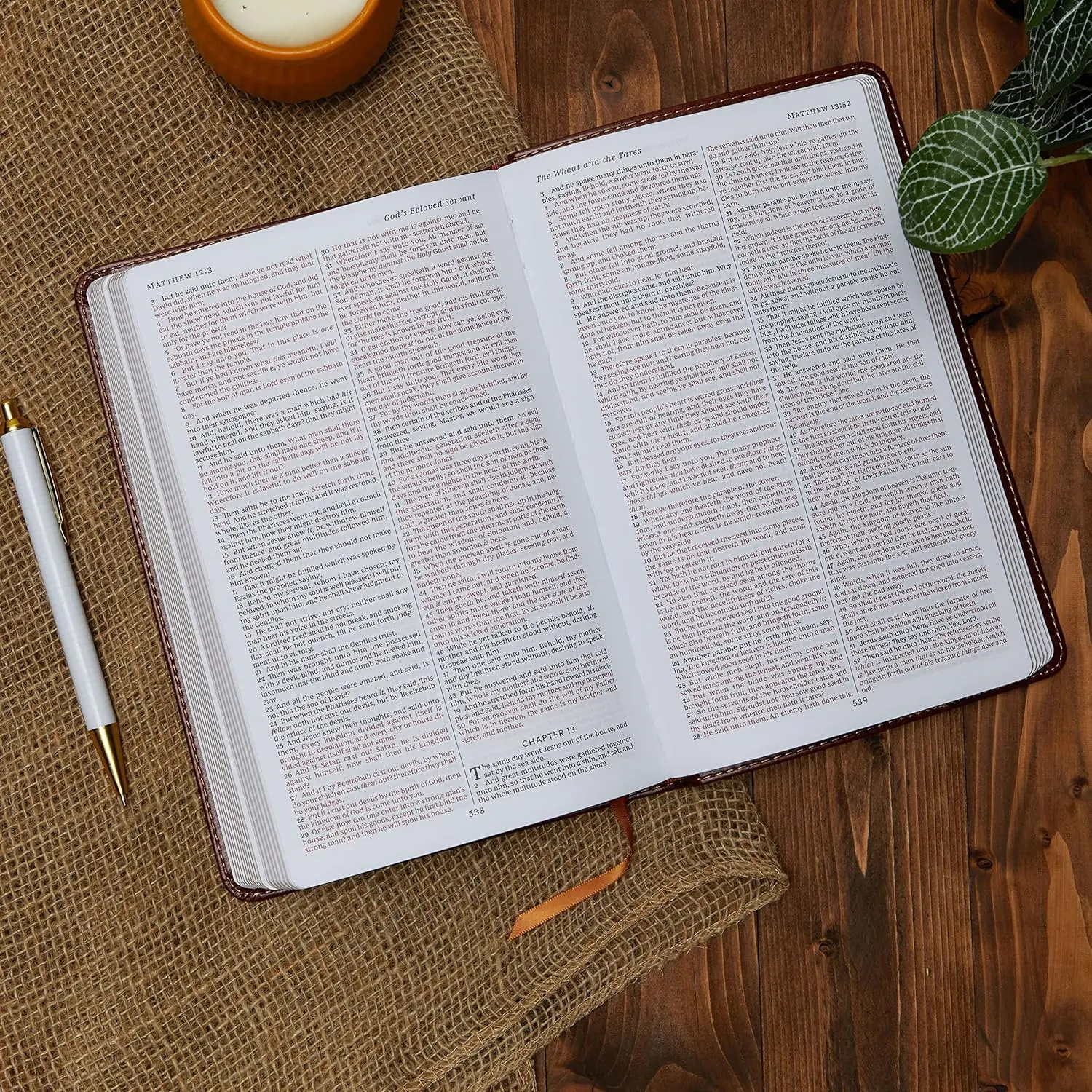 This KJV Holy Bible, in burgundy leather-look, features red lettering and comfort print. Customers rave about its quality and affordability. Perfect for gifting, it's ideal for graduations, baptisms, and personal achievements. The presentation page allows personalization.
