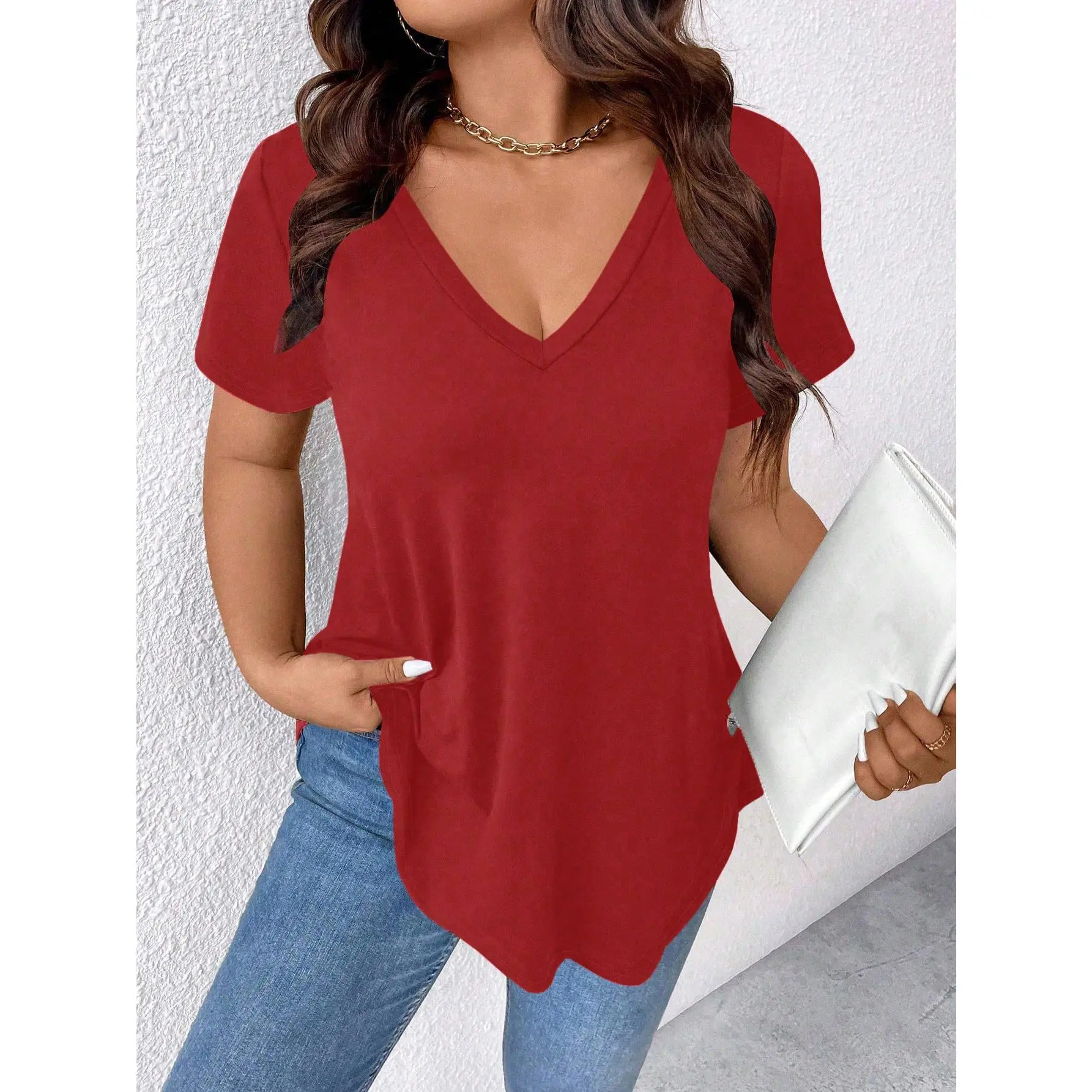Loose Fit V Neck T Shirt