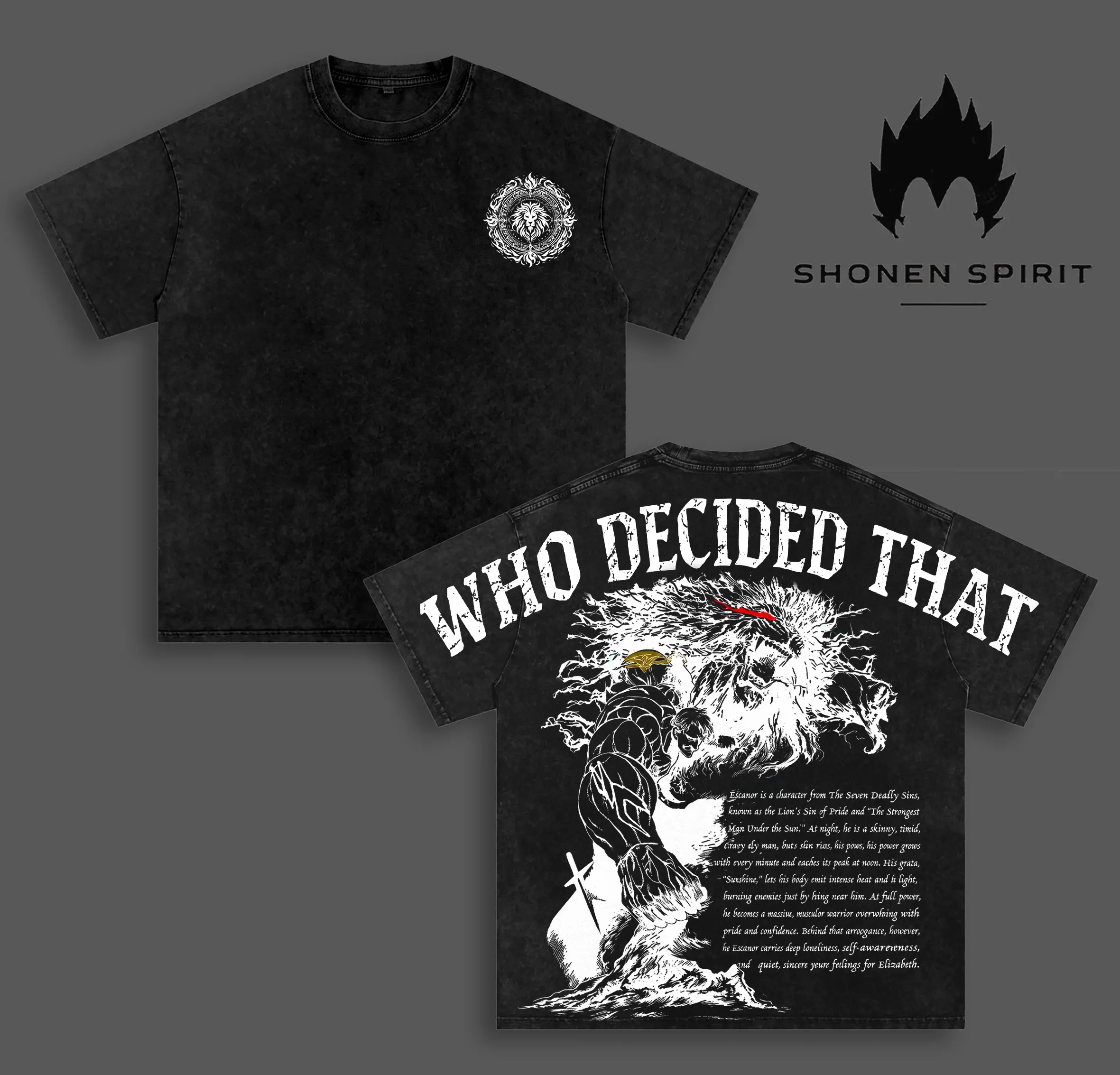 Escanor – The One Who Decided That Vintage Washed T-Shirt, Lion Sin Pride Anime Graphic Tee, Sun Power Aesthetic Oversized Heavyweight Cotton Streetwear For Fans