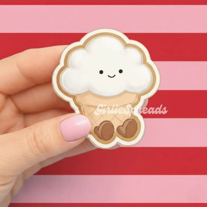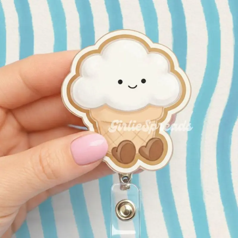 5. Ice Cream Cloud Badge Reel – Kawaii Waffle Cone Acrylic ID Holder – Pastel Retractable Clip