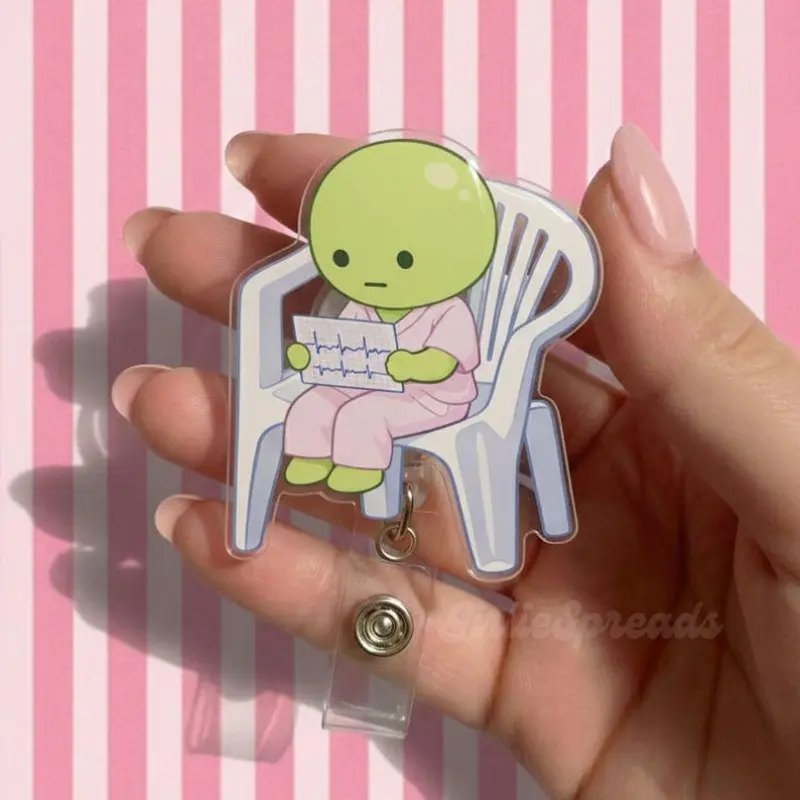 5. Kawaii Green Buddy Nurse Badge Reel | Pastel EKG, Medical ID Holder