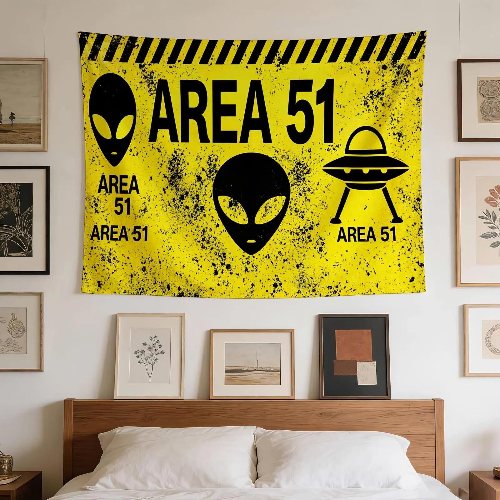 A Chic Wall Hanging Featuring an Alien-Themed Caution Sign, Ideal for Enhancing The Decor of Houses, Student Accommodations, And Bedrooms