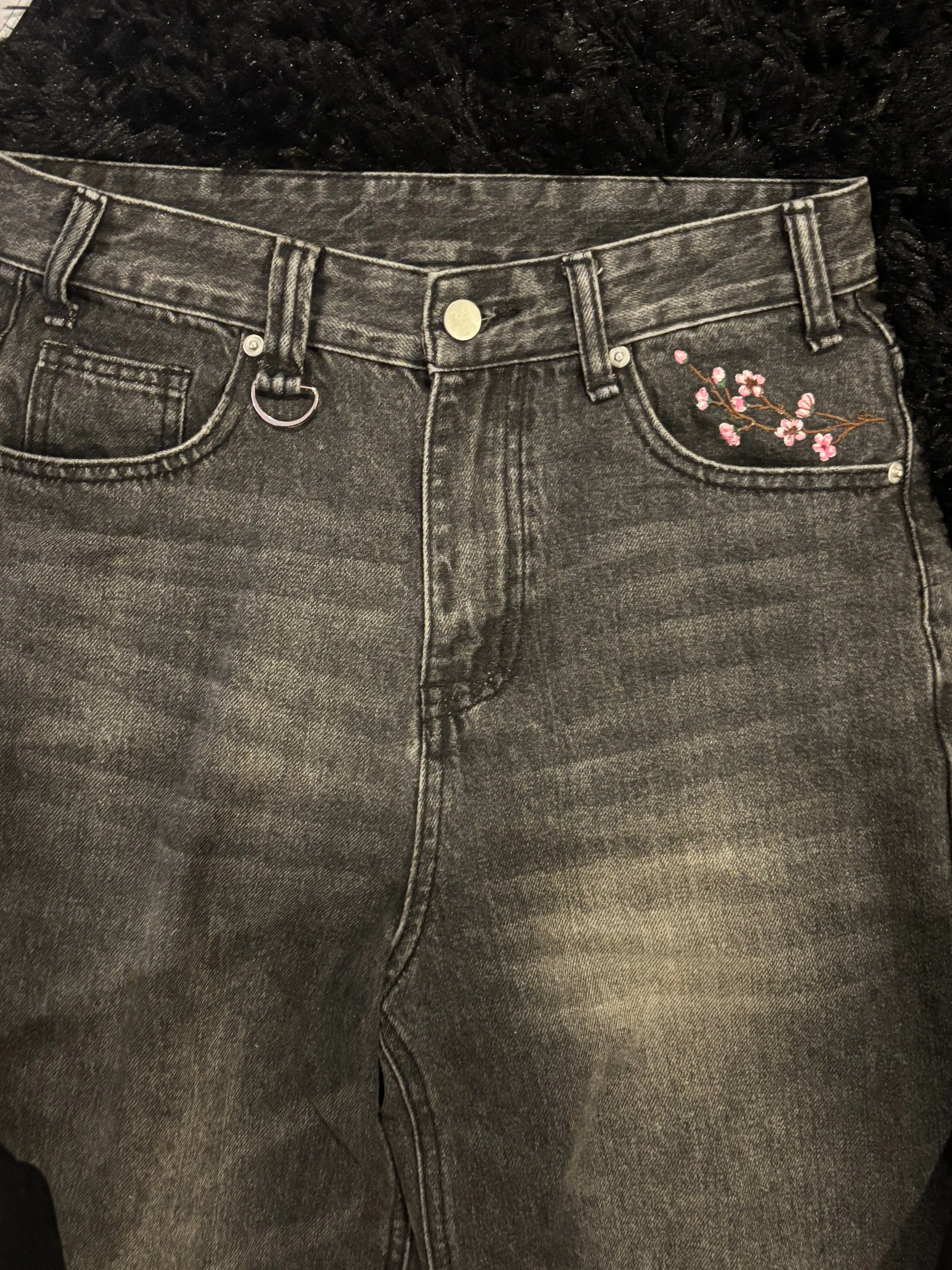 Black baggy embroidered jeans