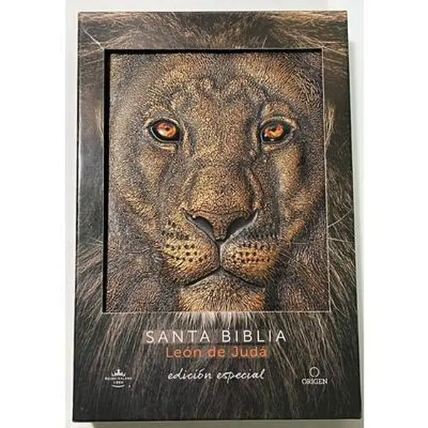 Large Print Ultrathin Bible RVR 1960 - Commemorative Lion of Judah Edition in 3D Bronze Holy Land Photo Bible with Words of Christ in Red, Gift Page & Ribbon Marker