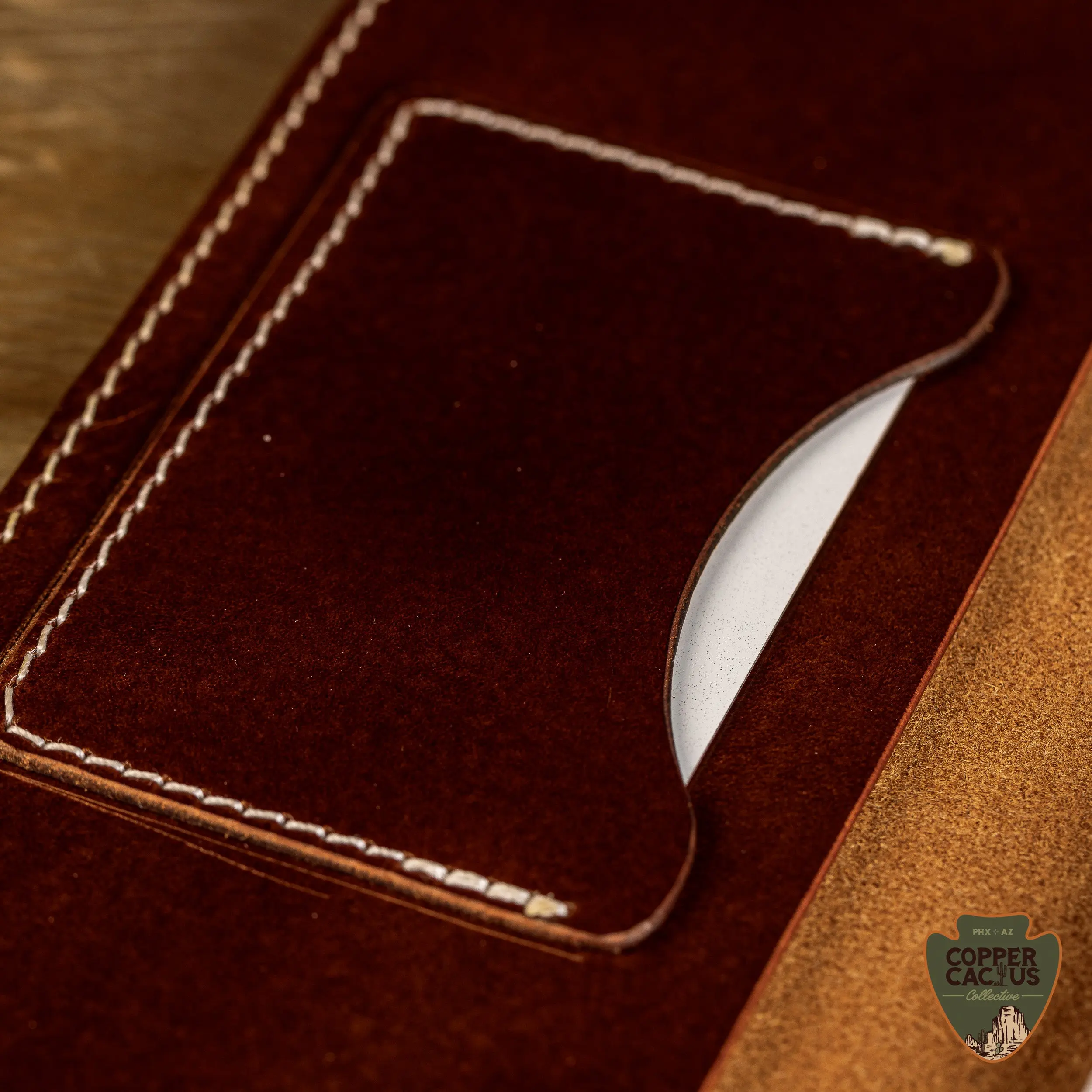 Stitched throughout with white bonded nylon. Fits a standard field tally book (3⅜" × 7⅞"). A leather care card is included with every order so you know how to keep it looking sharp for years to come.