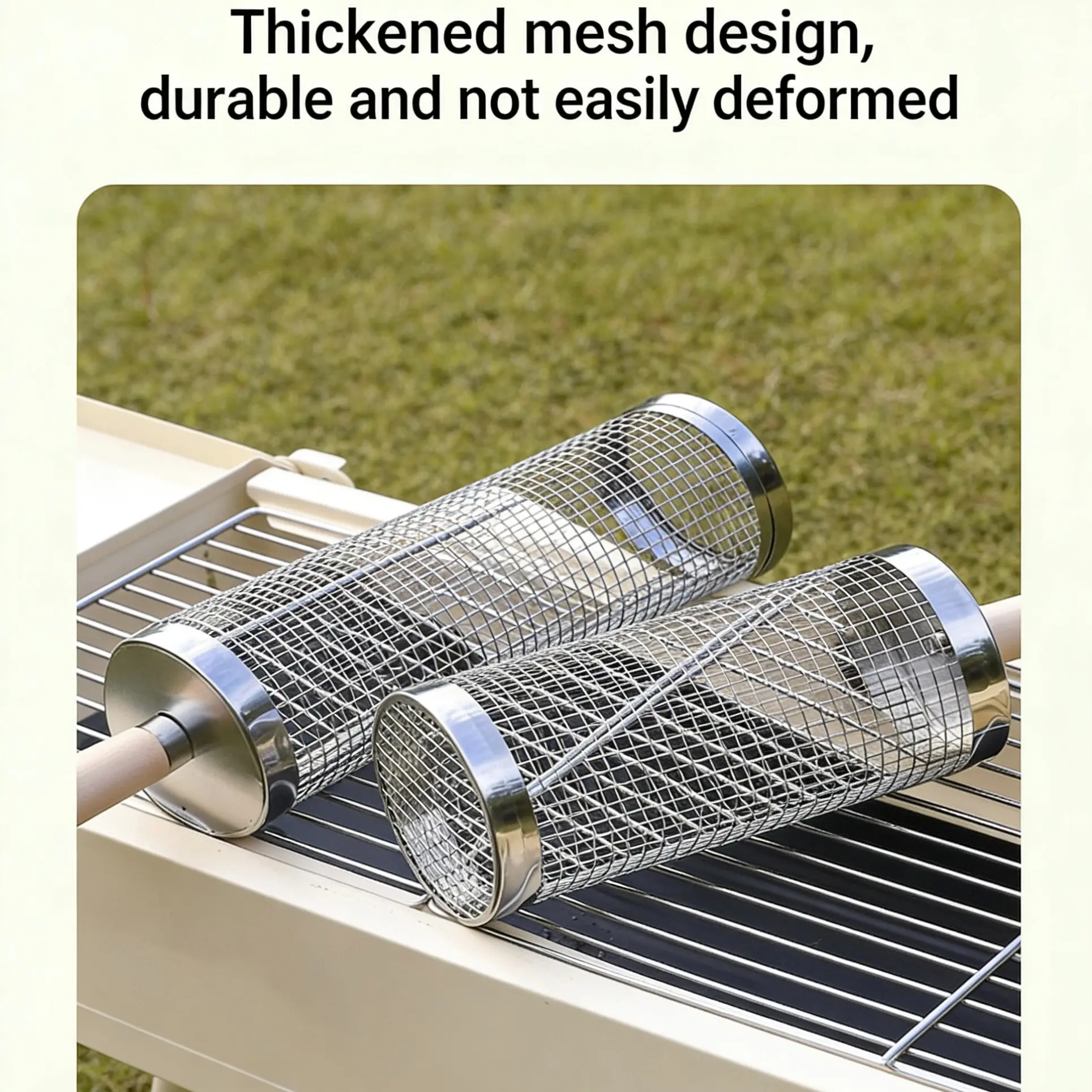 Upgrade BBQ Grill Basket, Portable Outdoor BBQ Net, Rotating Round Grill Tube, Ideal for Camping & Picnics, Durable Design