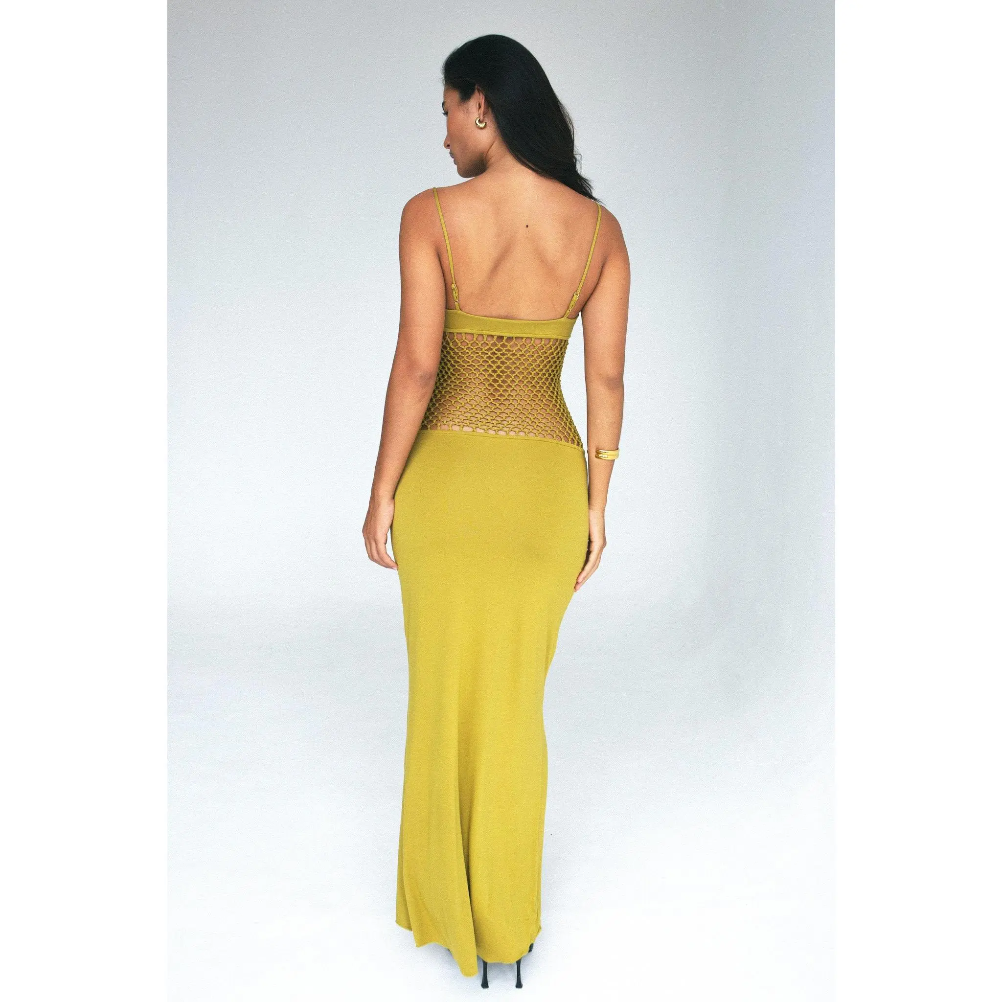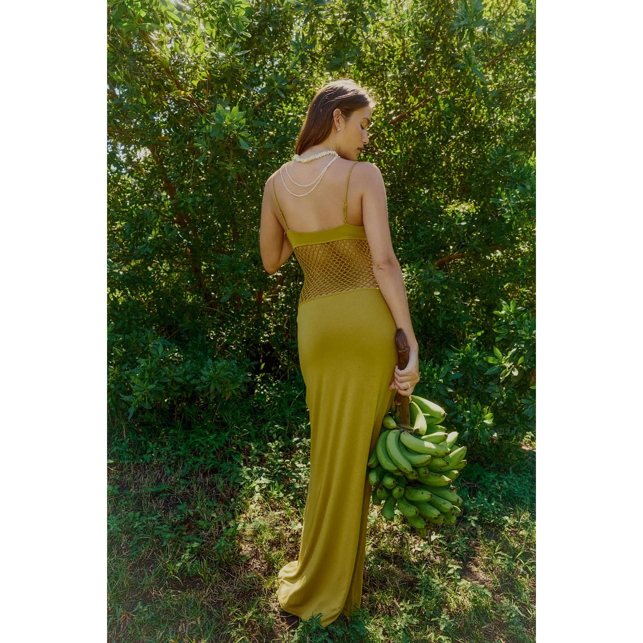 Our boldest maxi yet. Butter-soft Modal Tissue meets a daring, hand-knotted macrame waist. Pair with gold stacks and a sleek bun for a high-impact evening look.