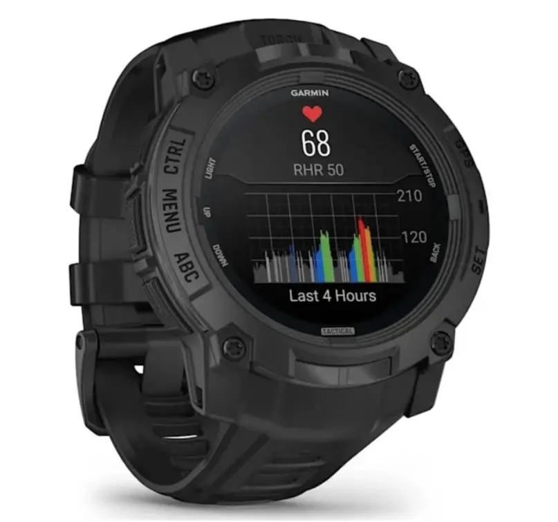 ·TACTICAL FEATURES FOR MISSION READINESS. Includes jumpmaster mode, waypoint projection, stealth mode, kill switch, night vision goggle compatibility, dual-position GPS format, rucking activity, and preloaded tactical workouts.