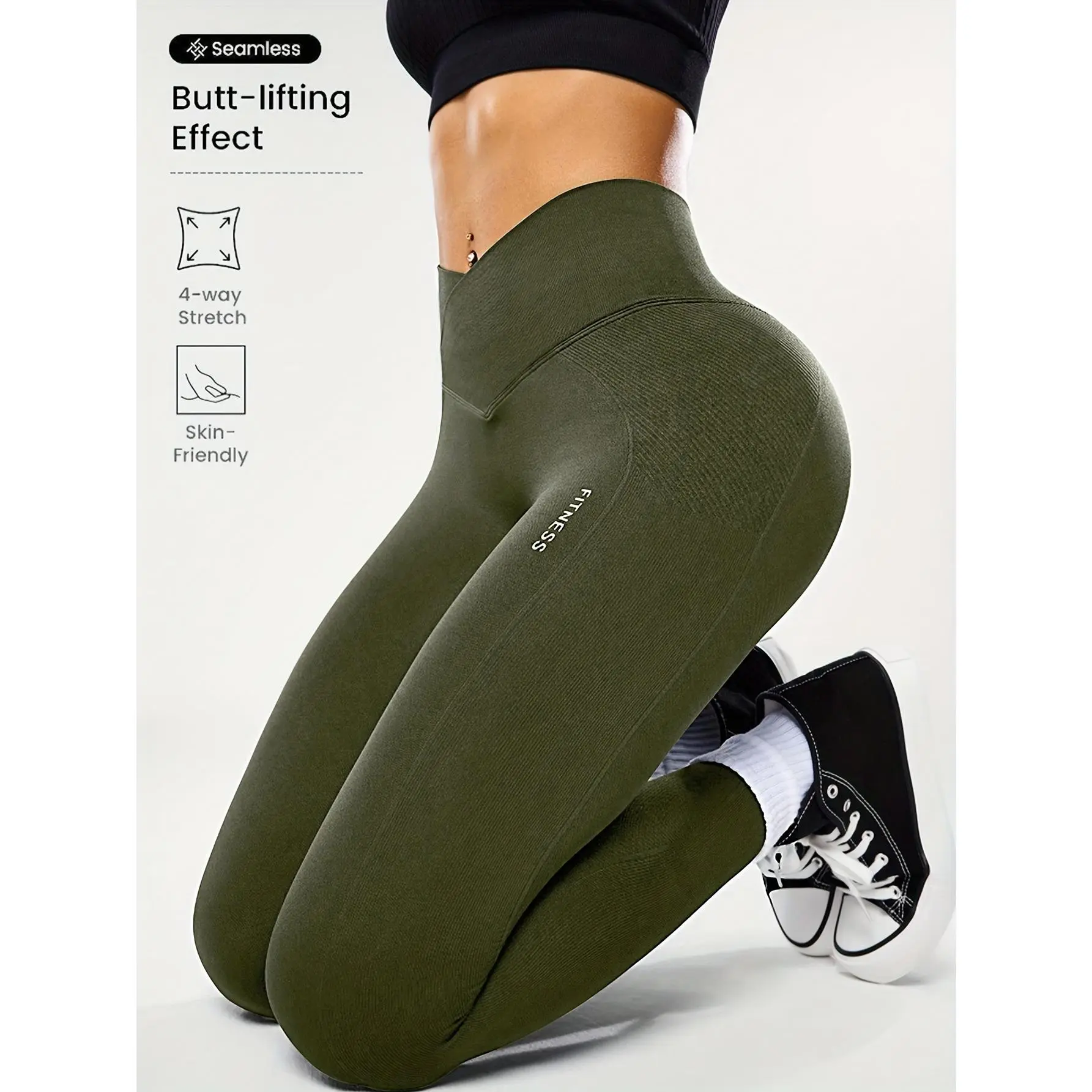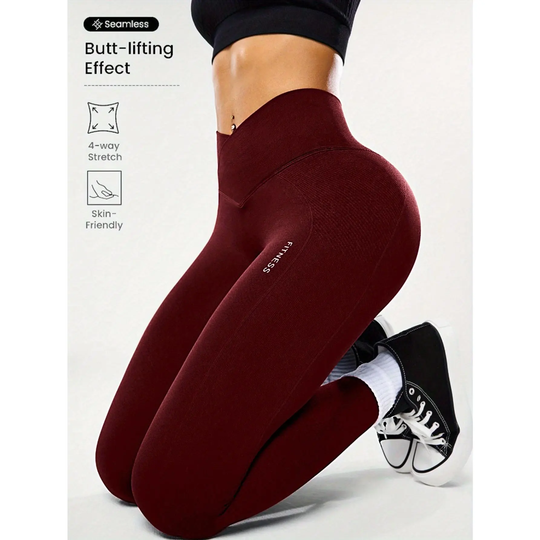 High-waisted Fitness Yoga Leggings with Waist Support for Shaping; the Waistband Is Designed in a Crisscross Style, Suitable for Various Sports.