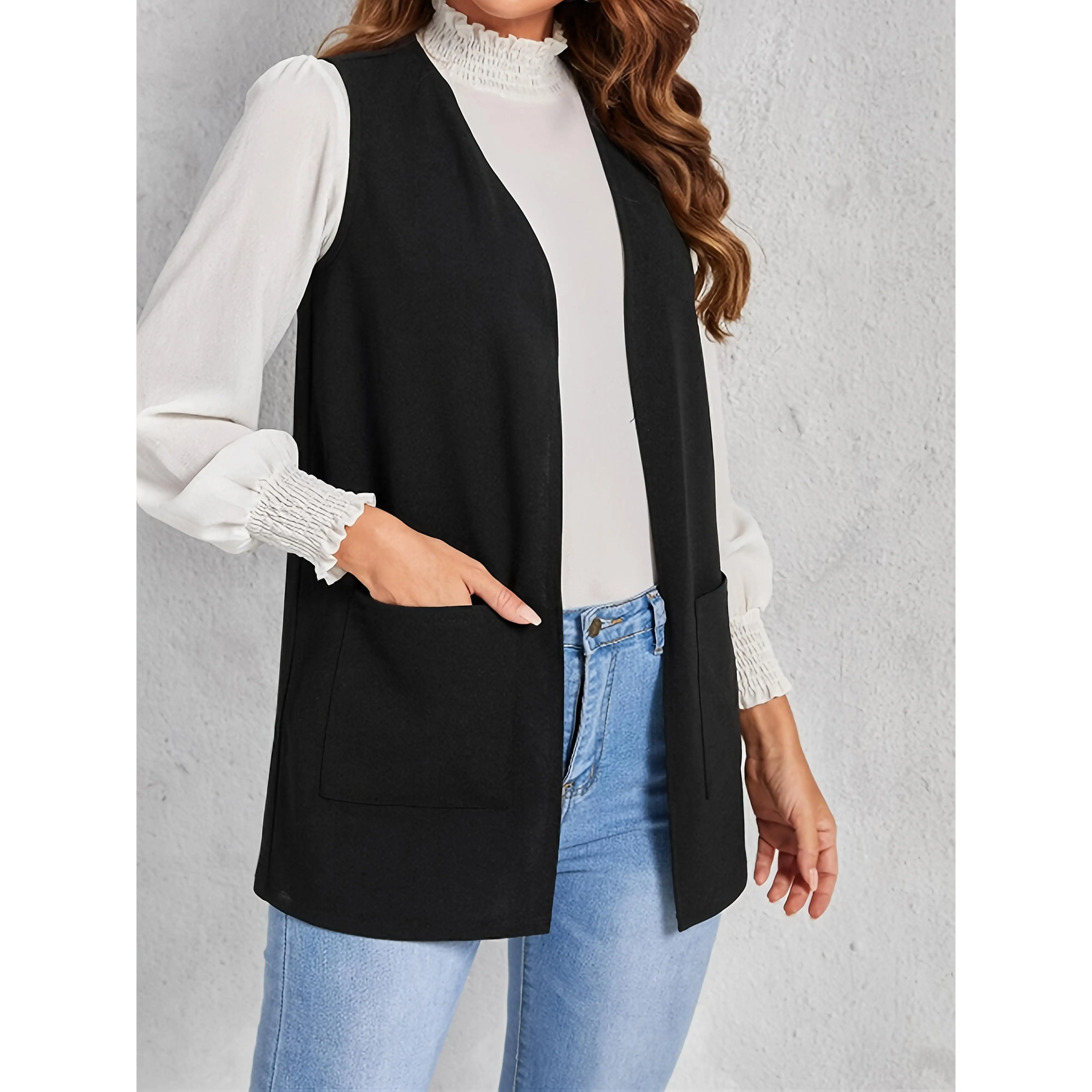Loose and Comfortable - Women's Sleeveless Cardigan - Regular Style