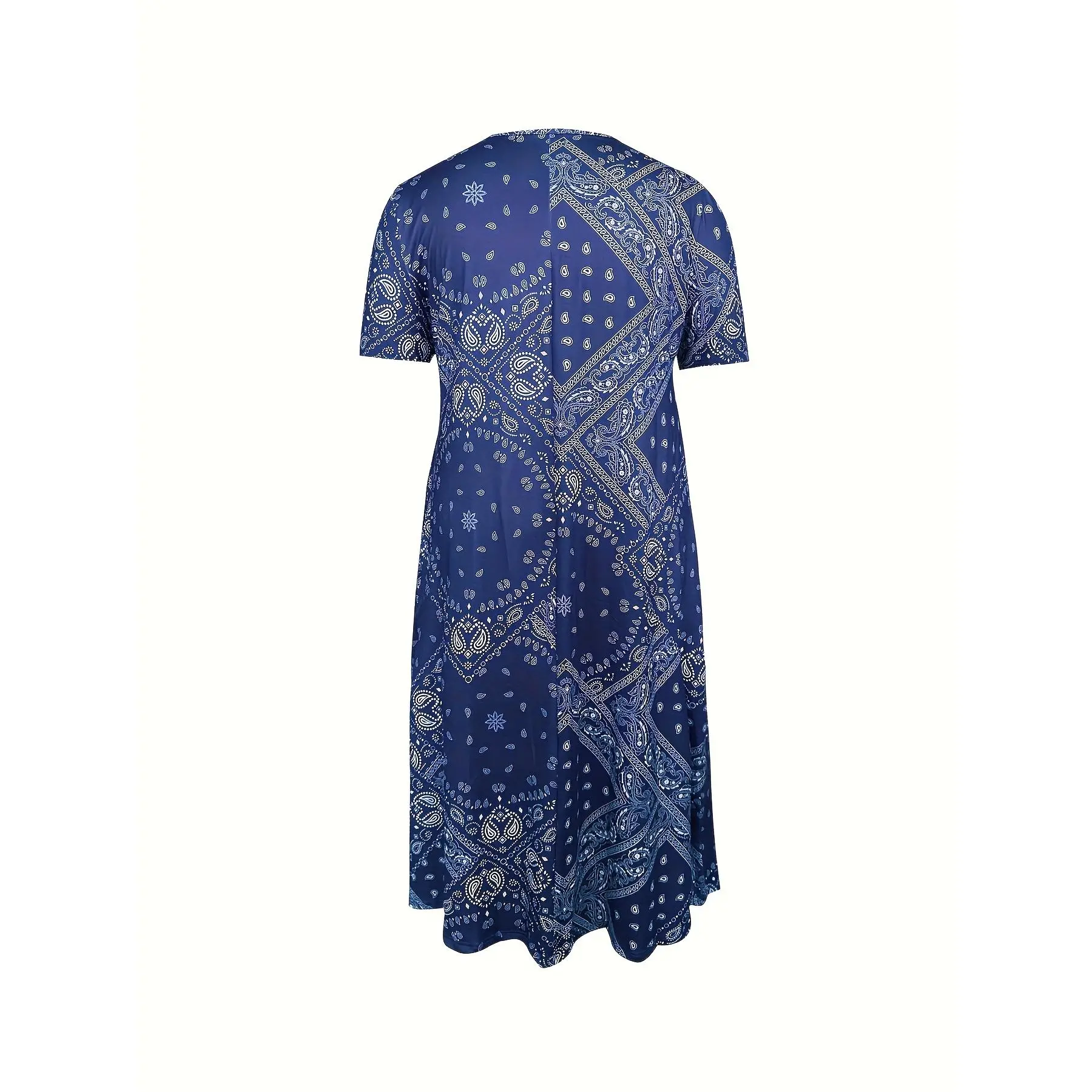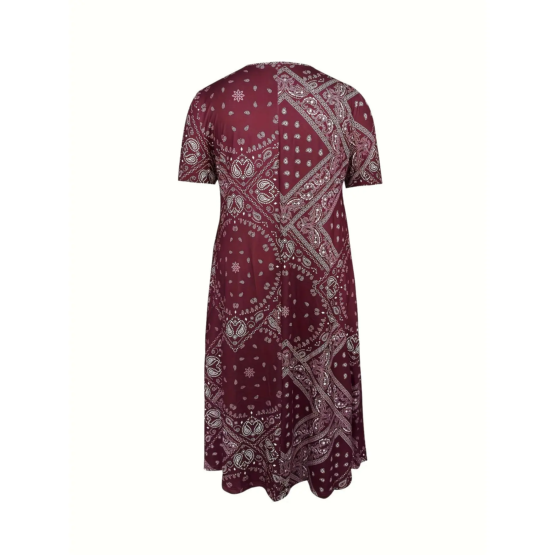 Plus Size Women Bohemian Ethnic Print Maxi Dress Flowing V neck Gown Full Skirt for Wedding Guest Holiday Vacation Green Black Purple Turquoise 2D Flat Printing