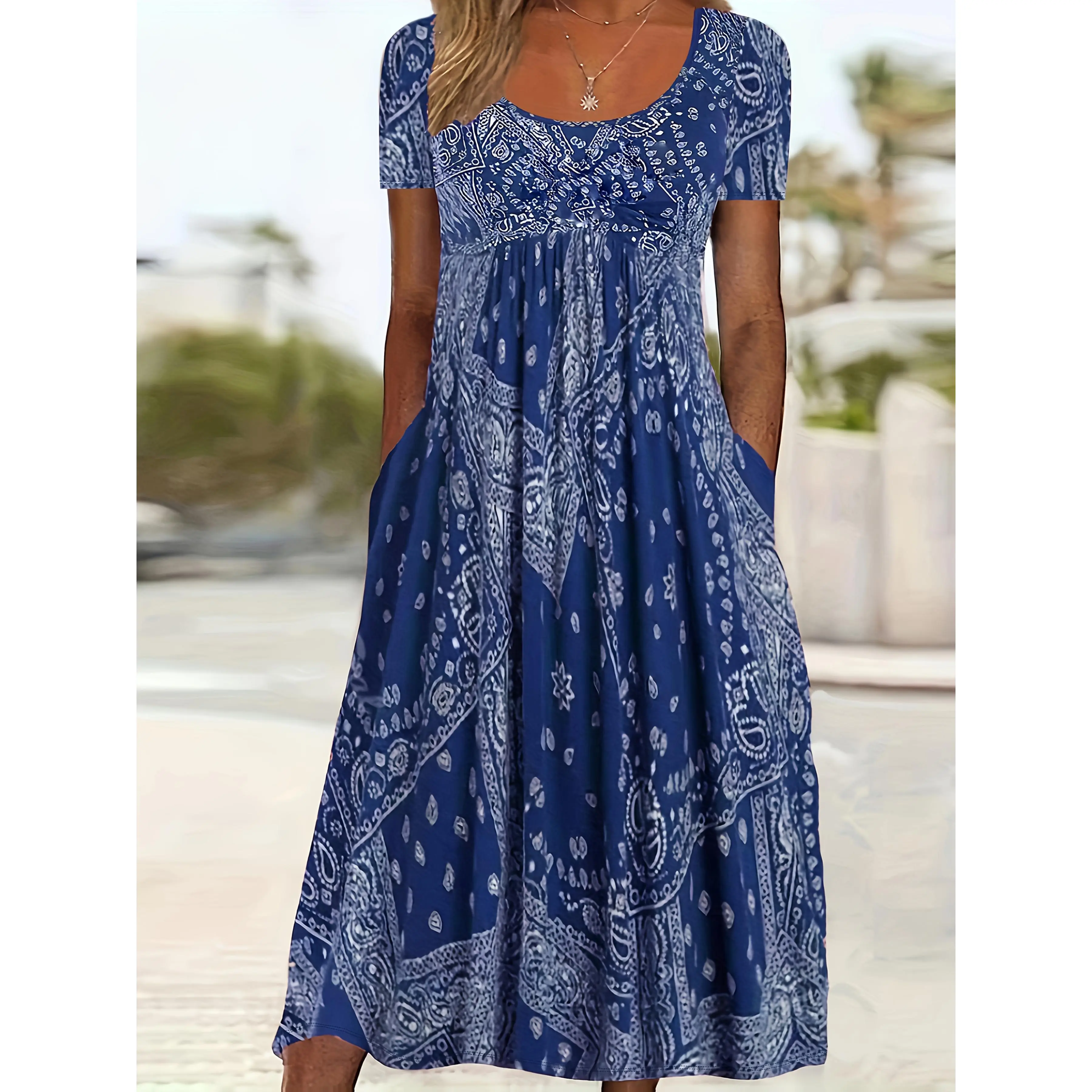 Dokotoo Square neckline stretch waistband printed dress Casual Womenswear Comfortable Elegance Fabric Feminine Flowy High Waist