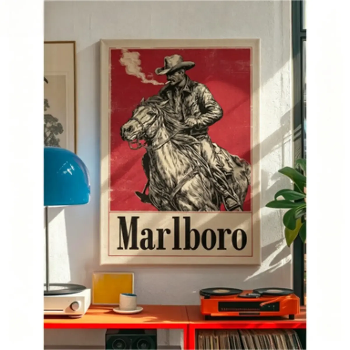 Vintage Marlboro Cigarette Canvas painting - Retro Western Cowboy - Marlboro Cowboy - Smoking Cowboy Wall Art - Cigarette Poster Print Eco-Friendly Attack On Titan Stick Season Lyric