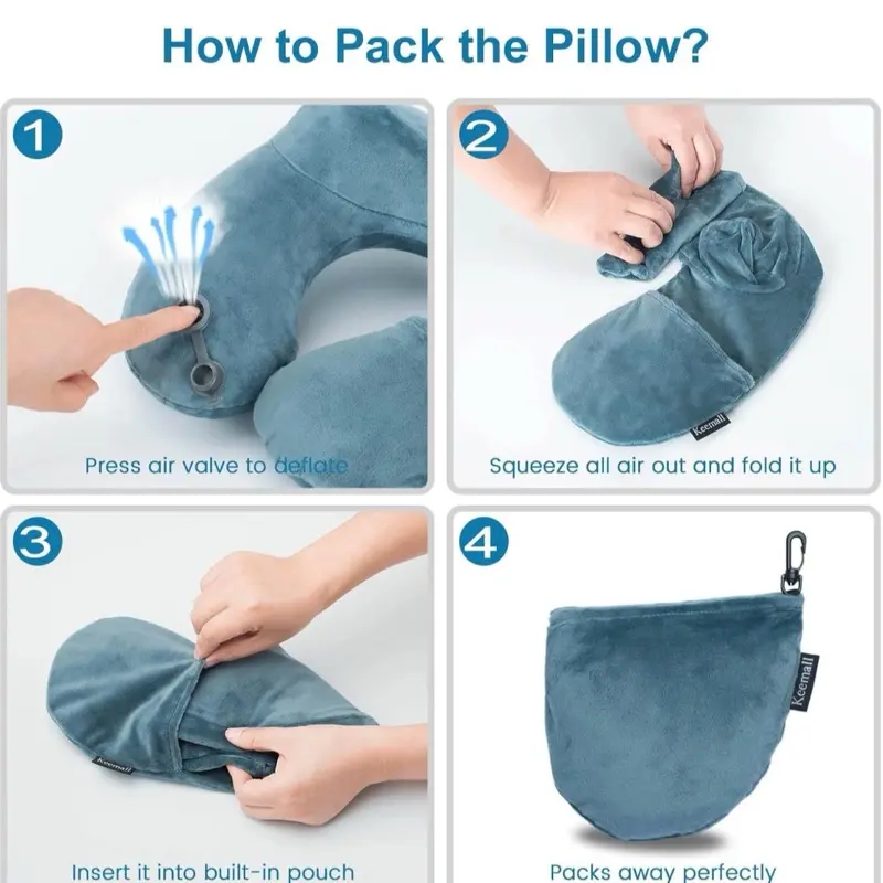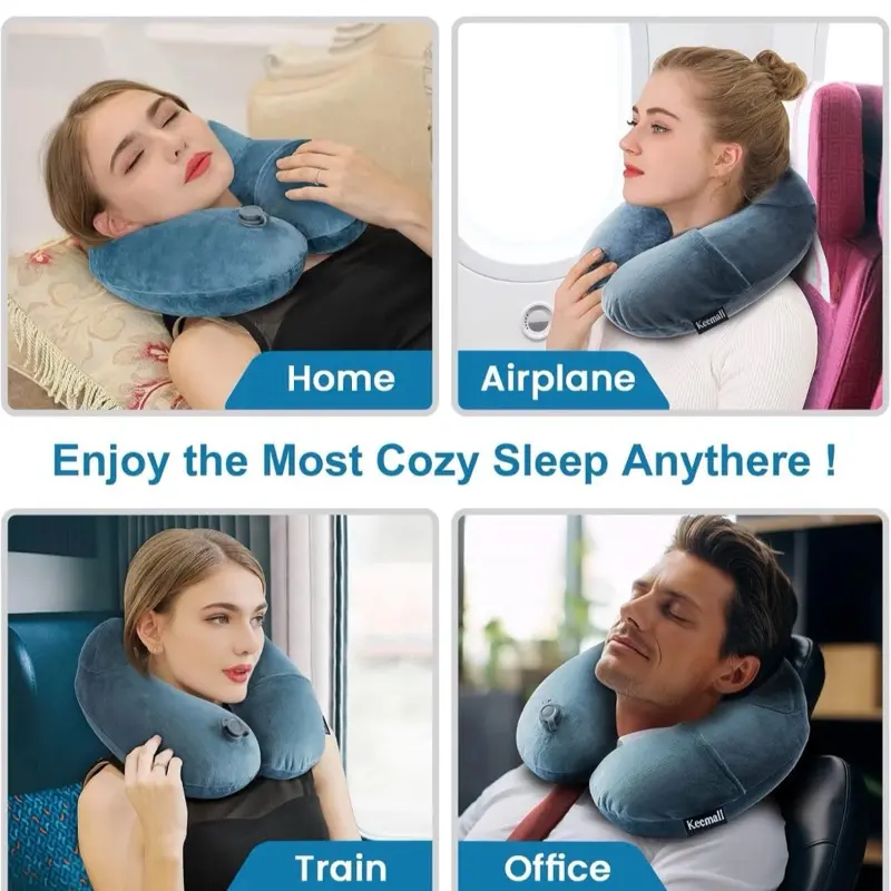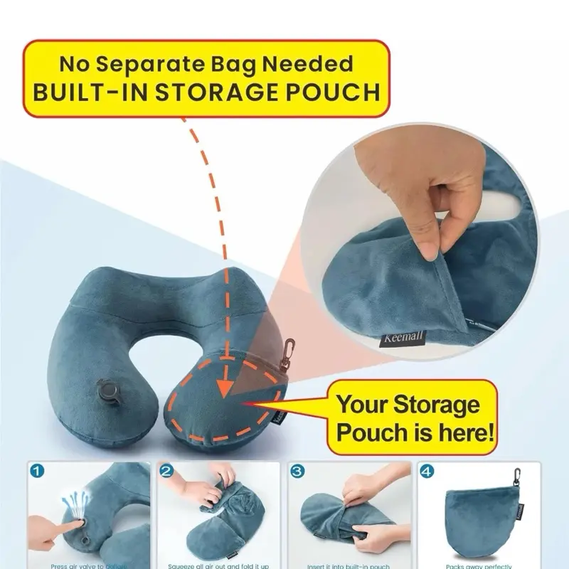 Inflatable Travel Neck Pillow for Airplane Sleeping Blow up Neck Support Air Pil Comfortable & Portable Design with Carry Bag