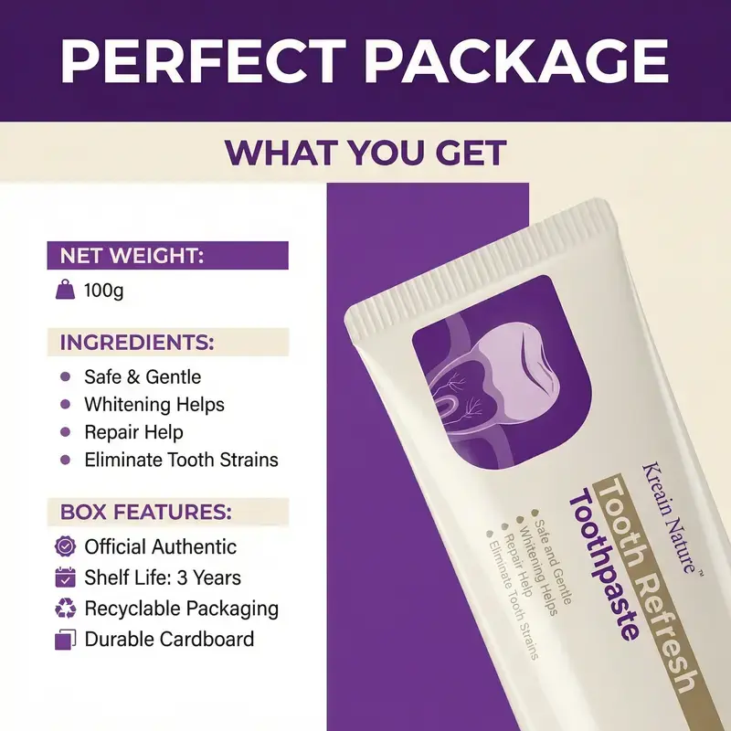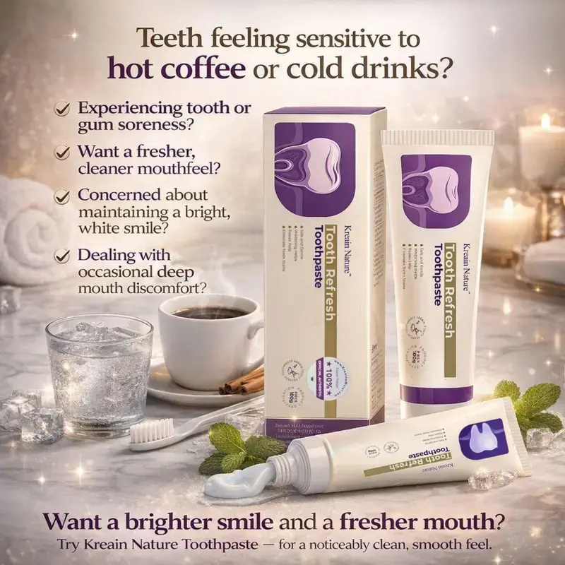 Kreain Nature Tooth Refresh Toothpaste for Fresh Breath Natural Ingredients Gentle Care Whitening Helps Repair Stains Eliminate Stains
