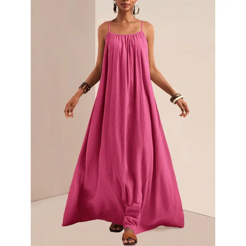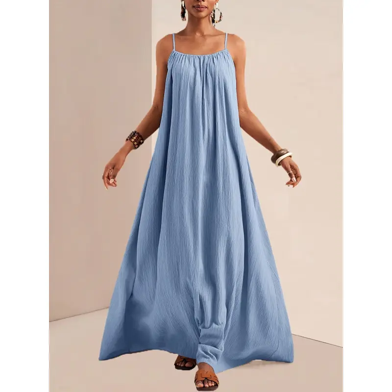 PUMIEY Women's Minimalist Bodycon Maxi Cami Dress Comfort Spaghetti Strap Womenswear Tight Dresses for Holiday Party Daily Wear Casual Sleeveless Dress Basic Ladies Clothing Lady Casual Wear Summer Summervibes
