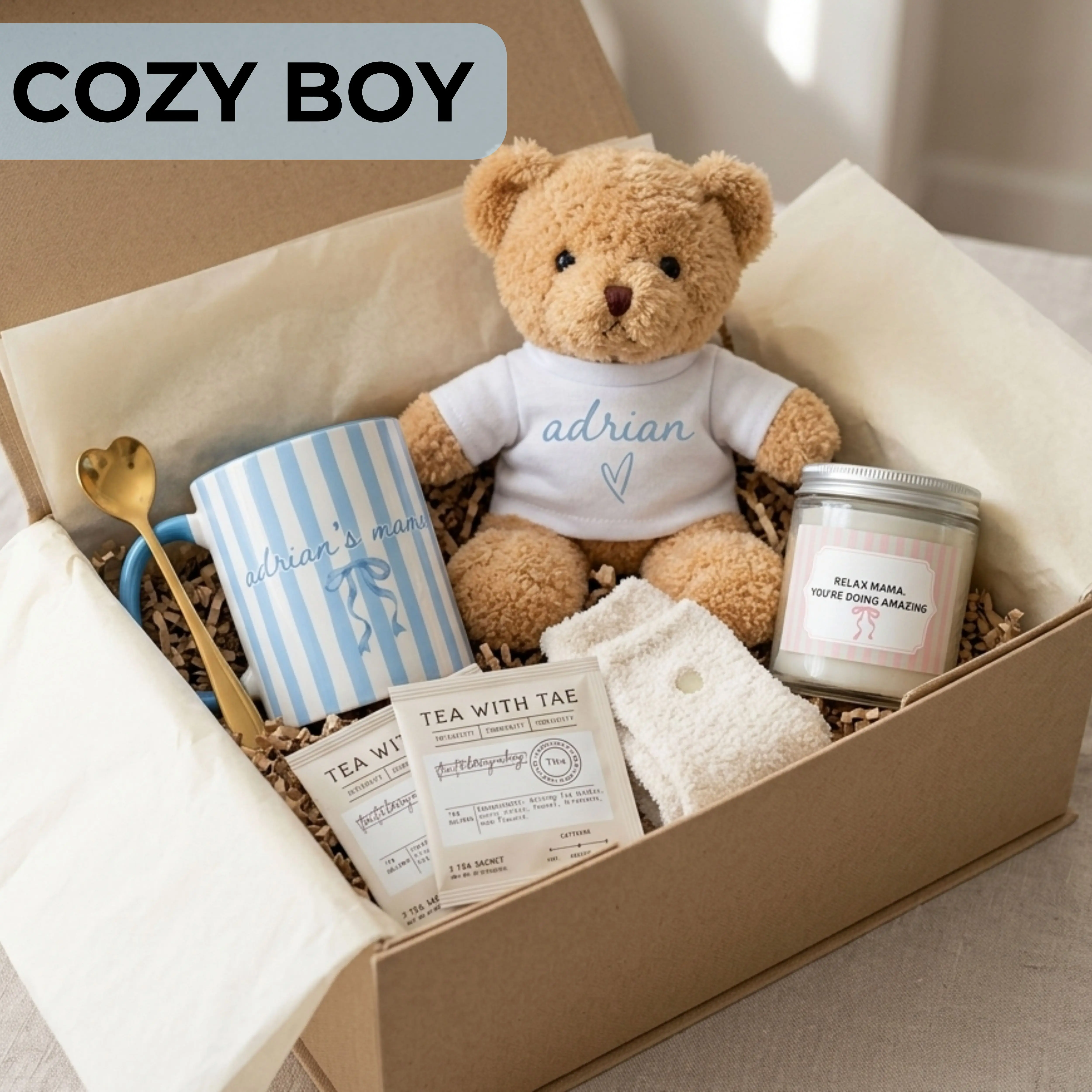 Includes keepsake teddy bear + cozy essentials