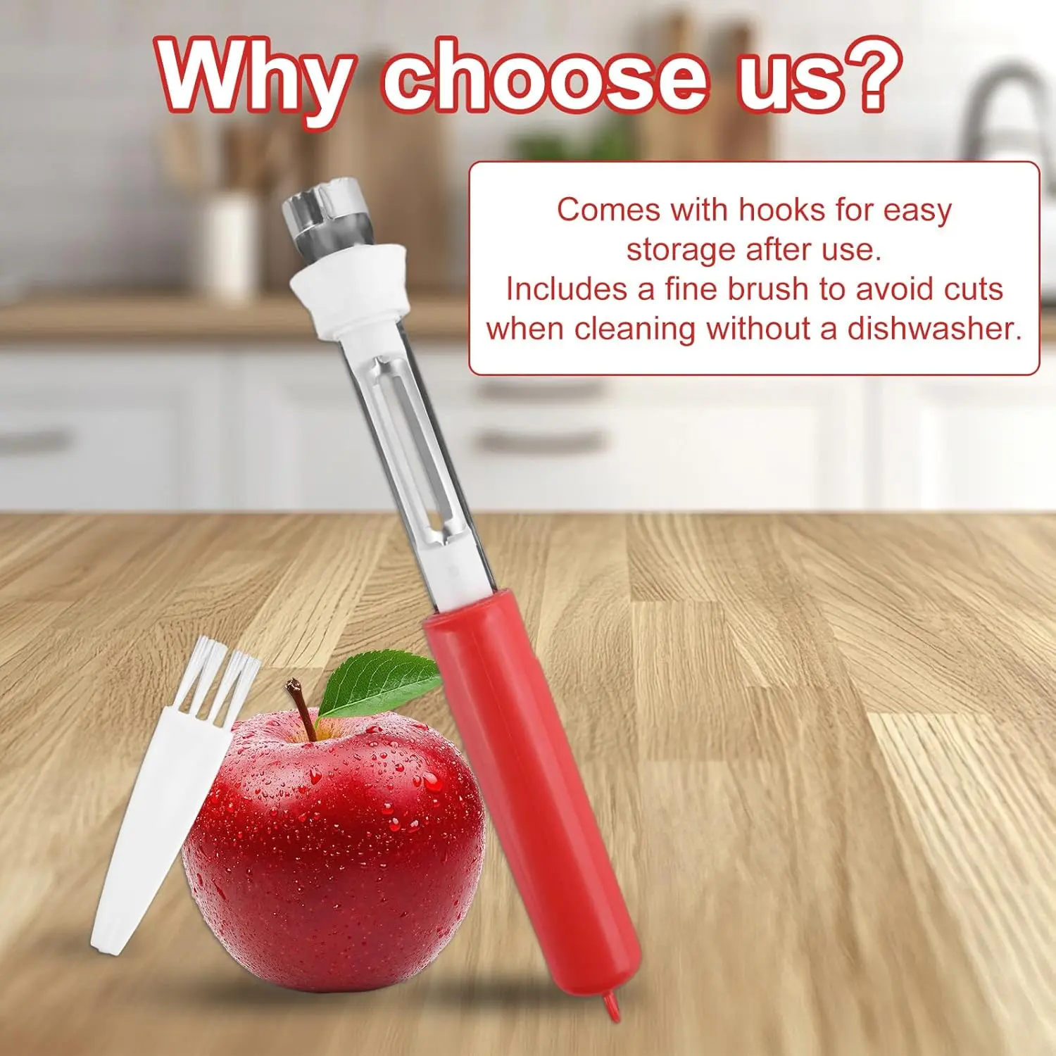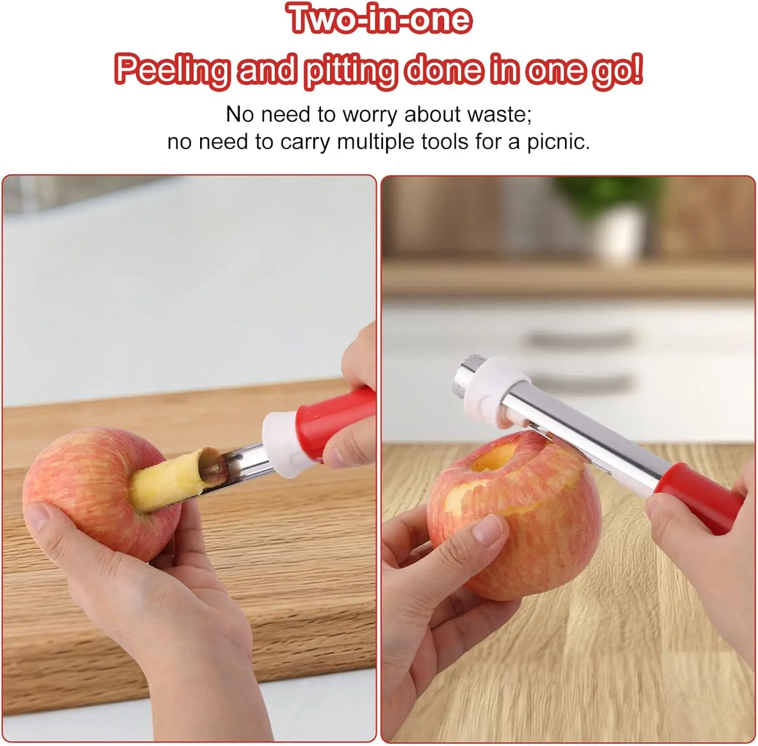 ·2-in-1 Design: Retractable apple corer and peeler combines both functions in one tool, reducing kitchen clutter; includes 1 cleaning brush