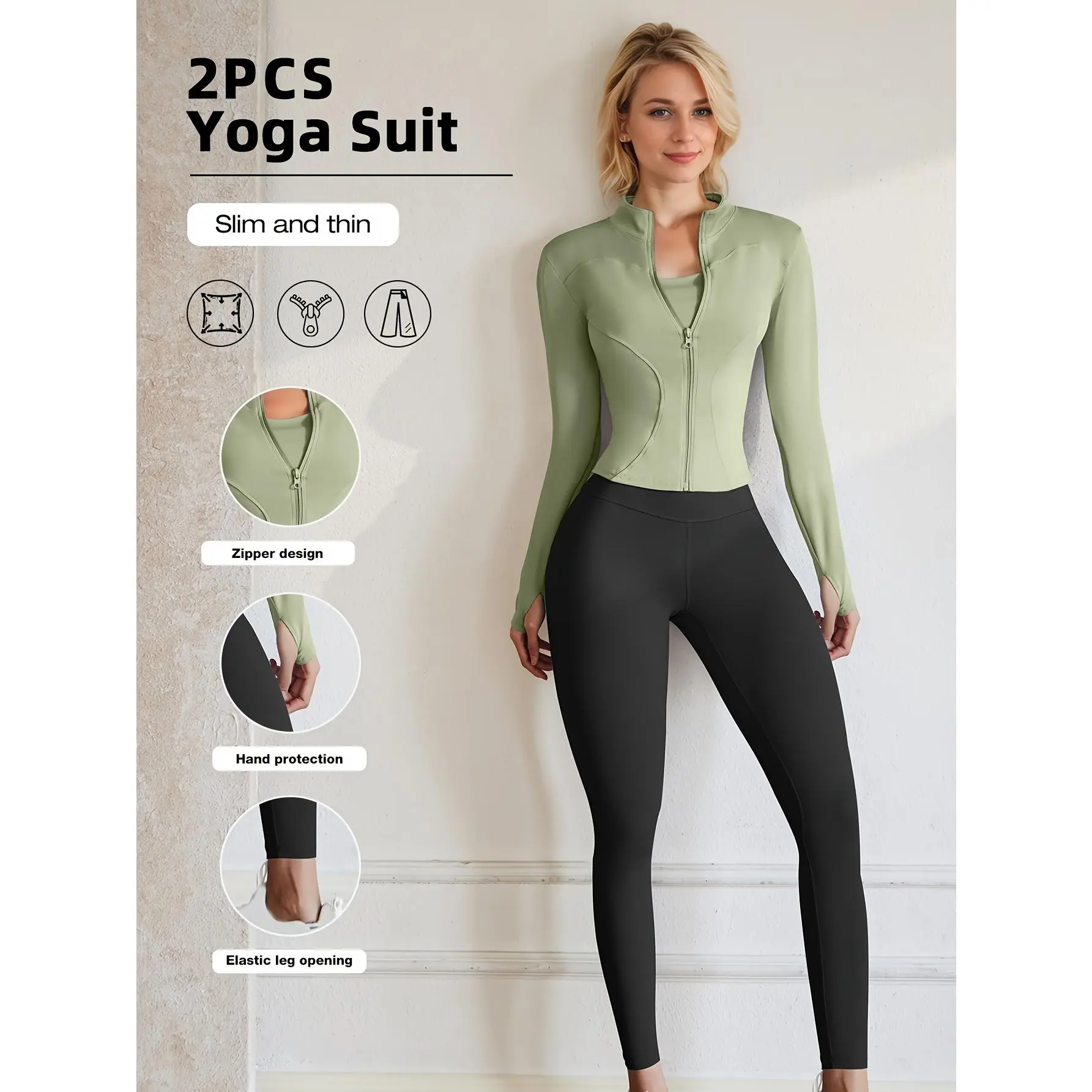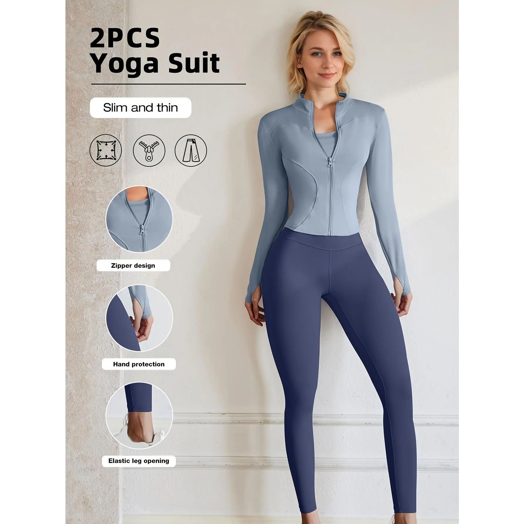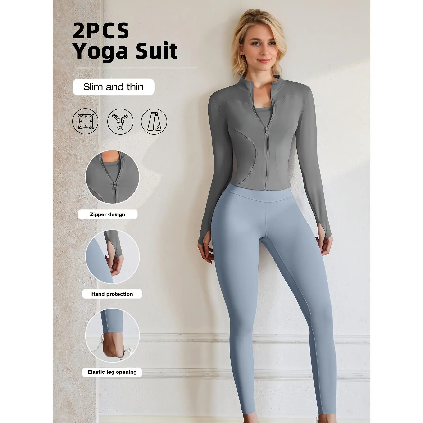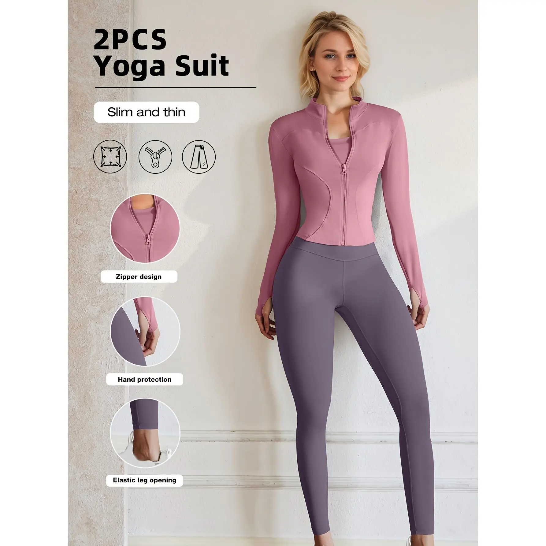 European size polyester fabric fitness running suit, long-sleeved sports jacket, cycling and hiking tight-fitting pants fitness set