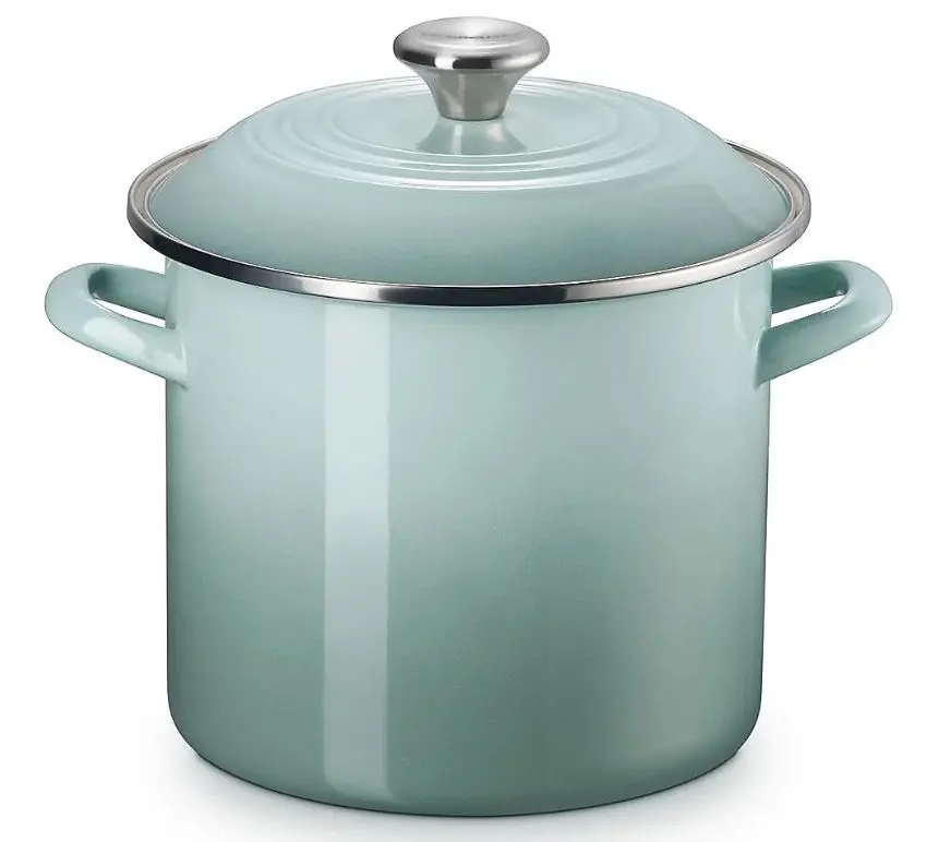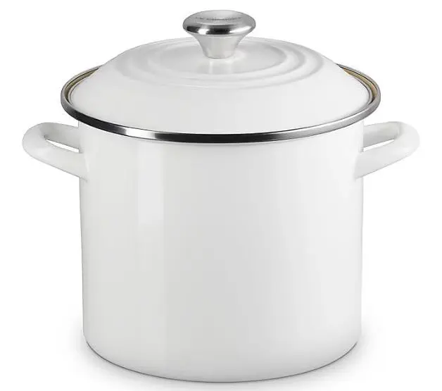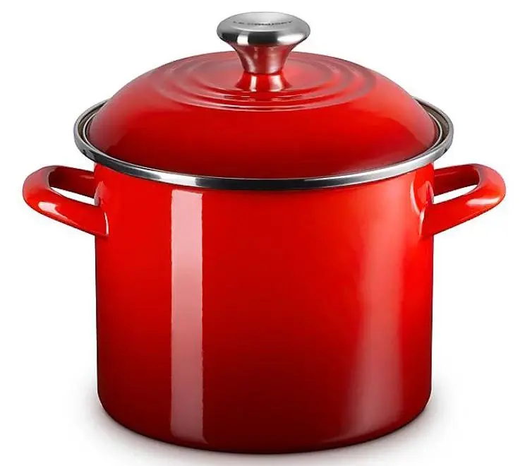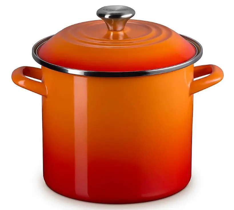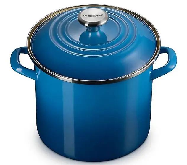 Perfect for family gatherings or dinner parties, this enamel-on-steel stockpot is designed to enhance your cooking experience with its responsive carbon steel construction. Boil pastas, simmer soups, and create hearty stocks with ease. The vibrant porcelain enamel resists stains and scratches while adding a pop of color to your kitchen. The lightweight design ensures swift boiling and excellent heat retention, making prep and cooking a breeze. From Lee Creuset.