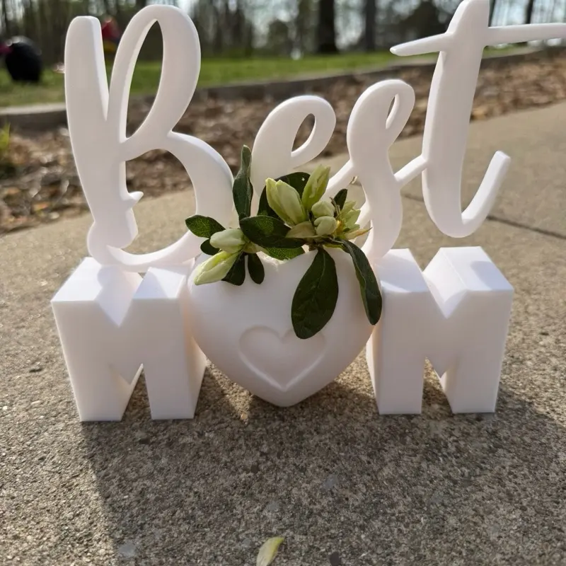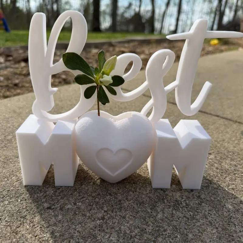 "Best Mom" 3D Printed Decor with Heart Vase | Custom Home Decor | Ideal Mother's Day Gift | Personalized Home Accents