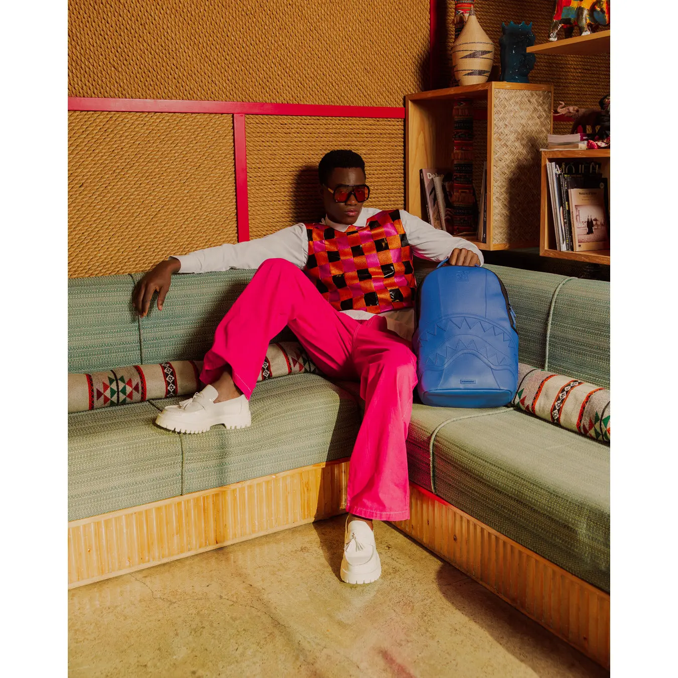 Dimensions: 18" x 6" x 11.5" • Front zipper pocket • Side pockets • Zippered Stash pocket • Separate velour sunglass compartment • Ergonomic mesh back padding • Adjustable Straps for custom sizing • Gold zippers with metal hardware • Metal "Sprayground Authentic" badge • Slide through back sleeve connects to carry-on luggage to free your hands