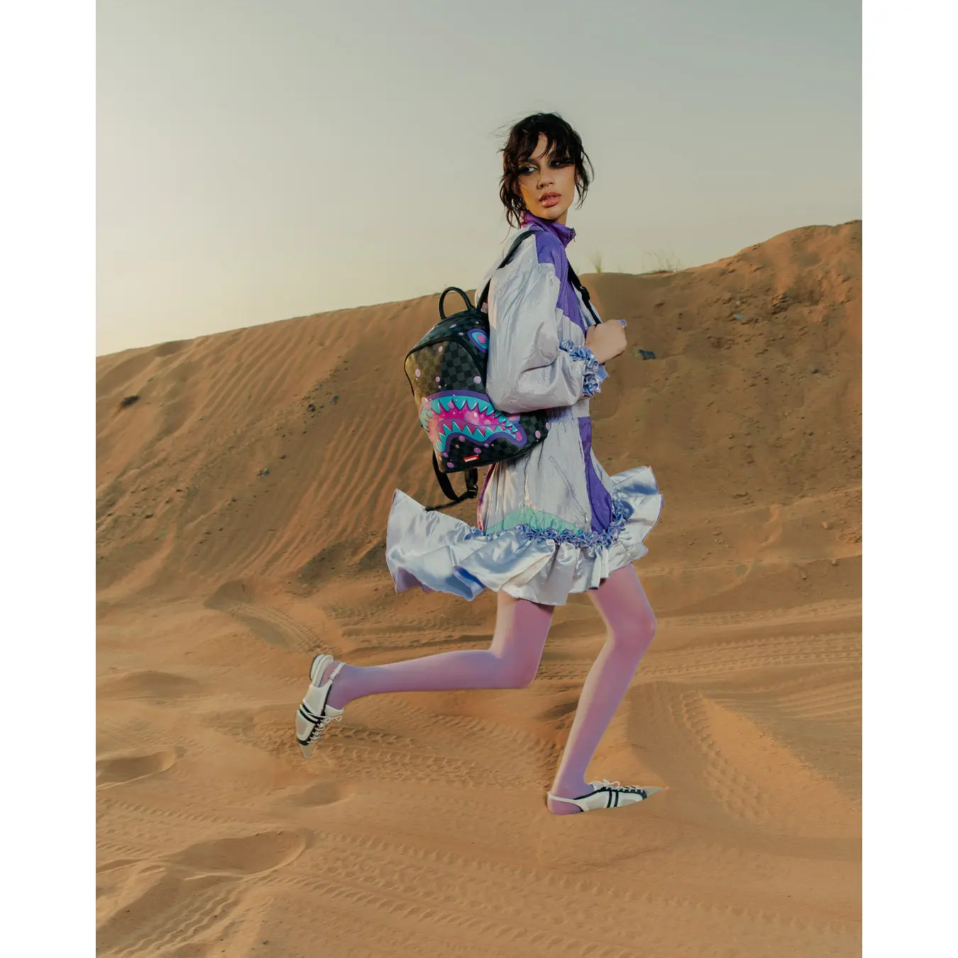 Dimensions: 10" x 5" x 11.5" • Two large main zippered compartments • Side pockets • Zippered Stash pocket • Adjustable straps for custom sizing • Gold zippers with metal hardware