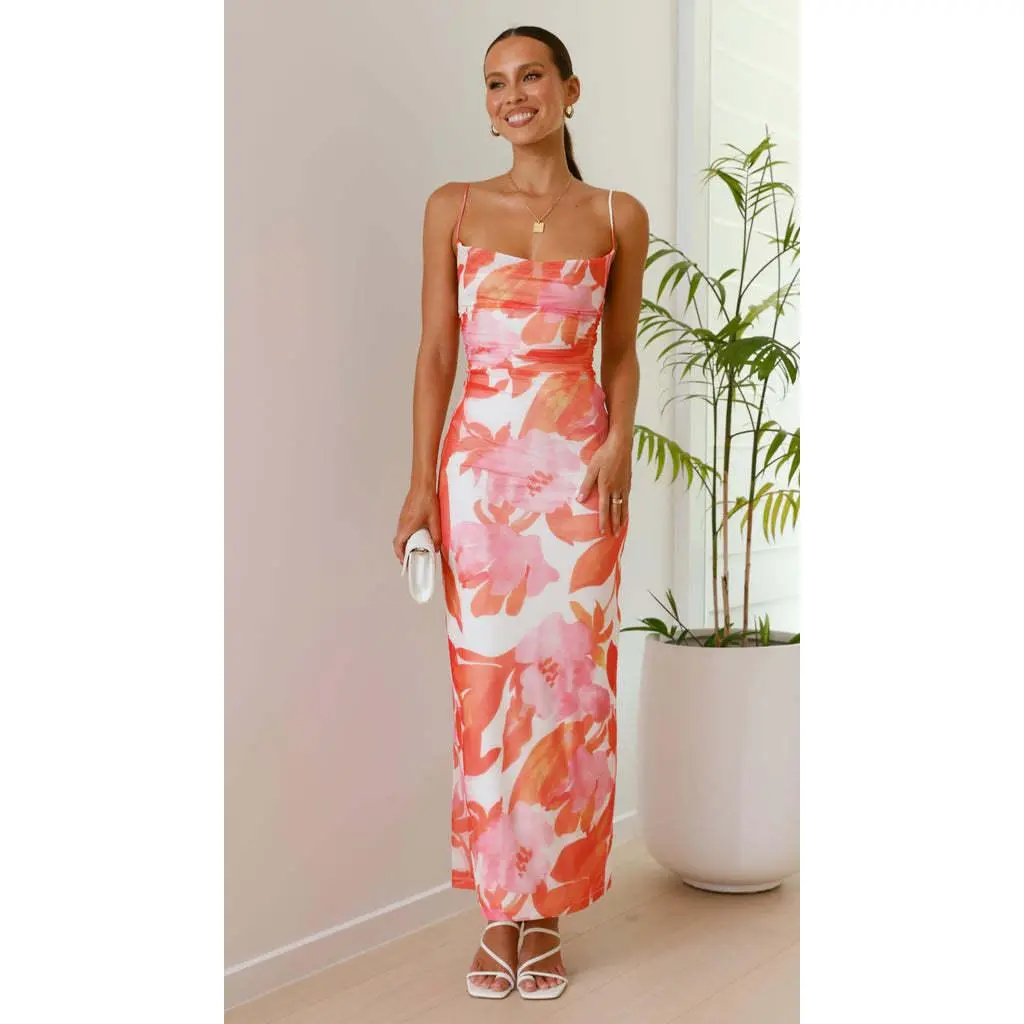Women's All Over Print RuchedBackless Split Thigh Bodycon TubeDress, Women's Clothing, SundressMaxi Dress, Elegant SleevelessLong Cown for Summer, Capri SunDress, Ladies Clothes for BeachHoliday Valentine's Day, gift Casual Floral Womenswear Gamis