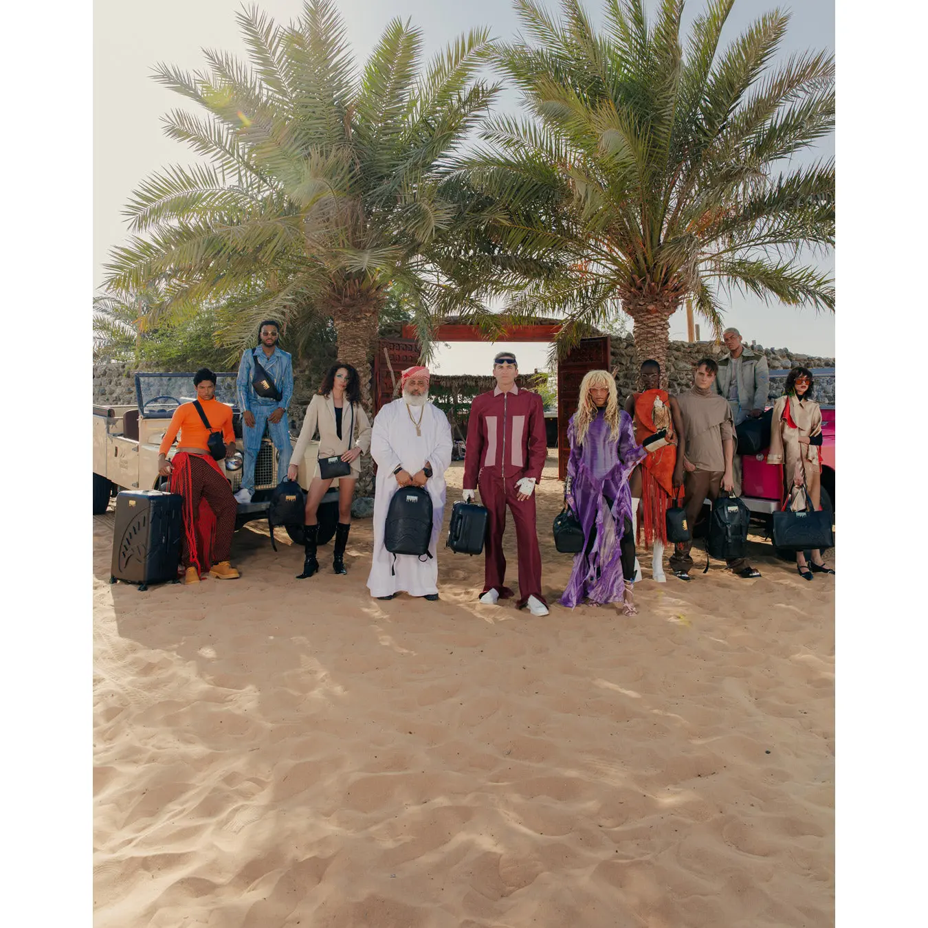 Dimensions: 10" x 5" x 11.5" • Two large main zippered compartments • Side pockets • Zippered Stash pocket • Adjustable straps for custom sizing • Gold zippers with metal hardware