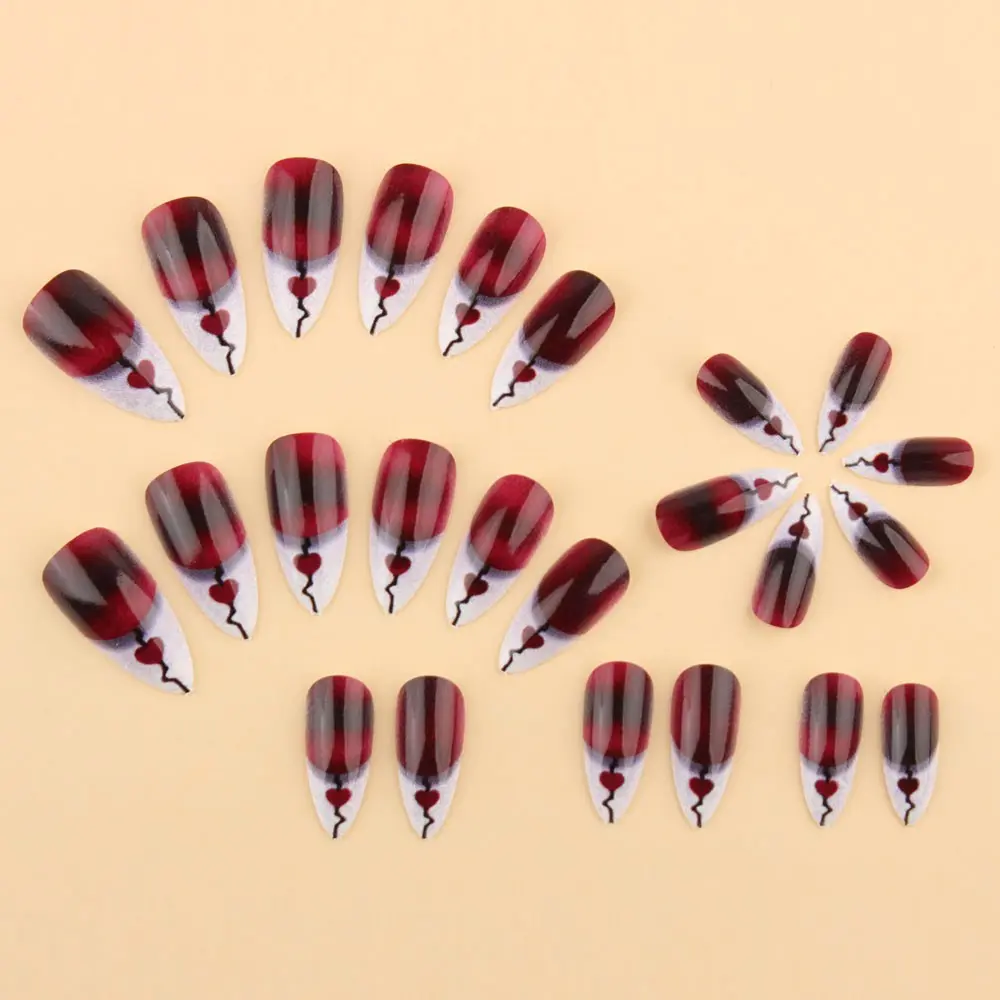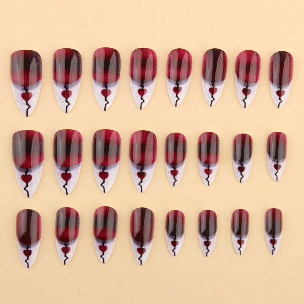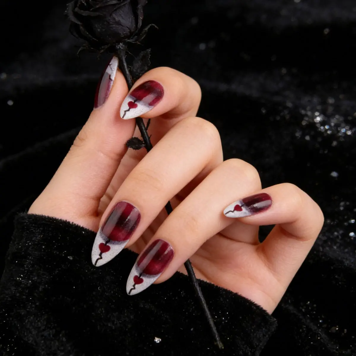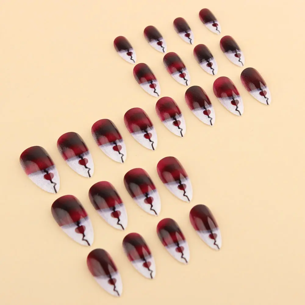 Mystical Blood Heart Nail Tips, Almond Shape False Nails, Perfect for Halloween, Date Night, Rock Style, 24 Pcs Set