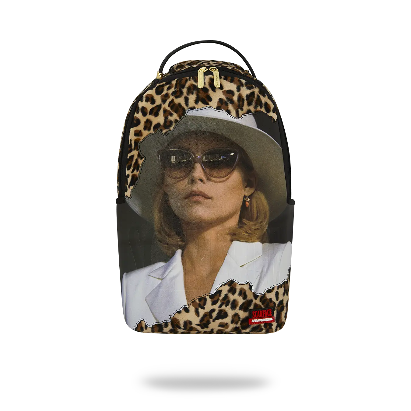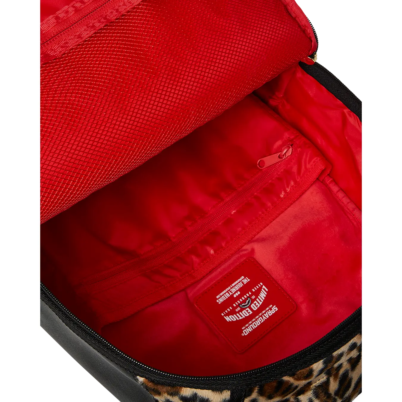 Dimensions: 18" x 6" x 11.5" • Front zipper pocket • Side pockets • Zippered Stash pocket • Separate velour sunglass compartment • Ergonomic mesh back padding • Adjustable Straps for custom sizing • Gold zippers with metal hardware • Metal "Sprayground Authentic" badge • Slide through back sleeve connects to carry-on luggage to free your hands