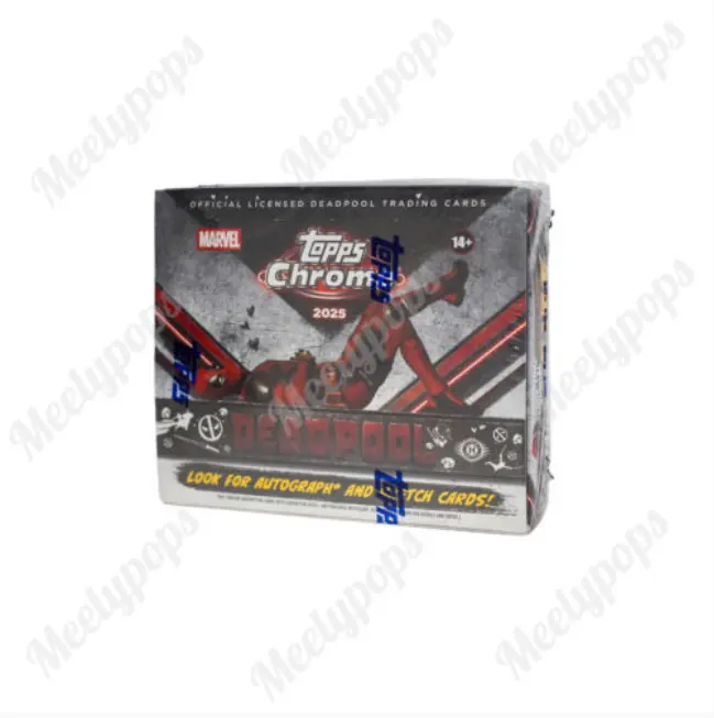 Unleash the full chaos of Wade Wilson with Deadpool Chrome, a must-have Topps trading card product celebrating Deadpool’s rich film and comic history. Featuring unique inserts, sketch cards, original artwork, and autographs from stars like Ryan Reynolds and Hugh Jackman, this set delivers a wild mix of cinematic and comic-book mayhem that every fan will want to collect.