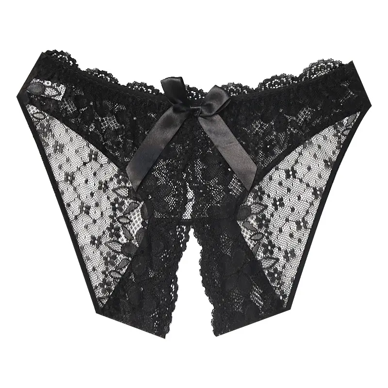 Women's Open Crotch Panties Low Waist Sexy Lace Transparent No-Remove Plus Size Briefs