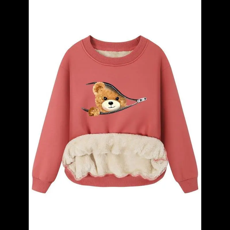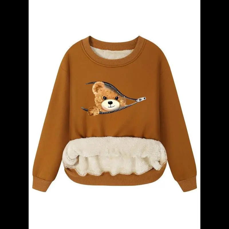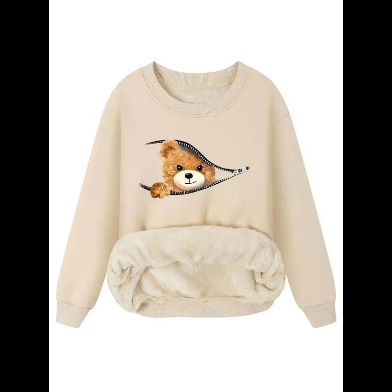 Women's Bear Print Pullover Sweatshirt, Casual Long Sleeve Crew Neck Plush Top for Fall & Winter, Fashion Ladies' Top for Daily Wear