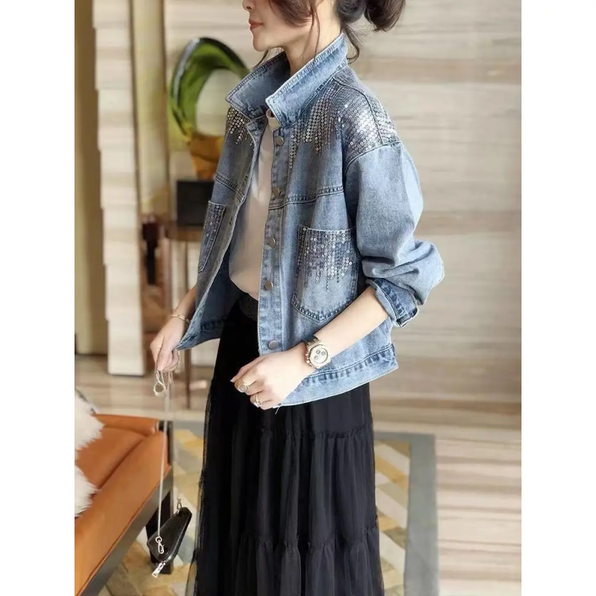 2026 Women's Sequined Denim Jacket Spring and Autumn Denim Coat Women's Jacket