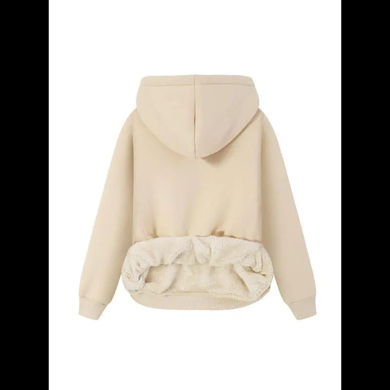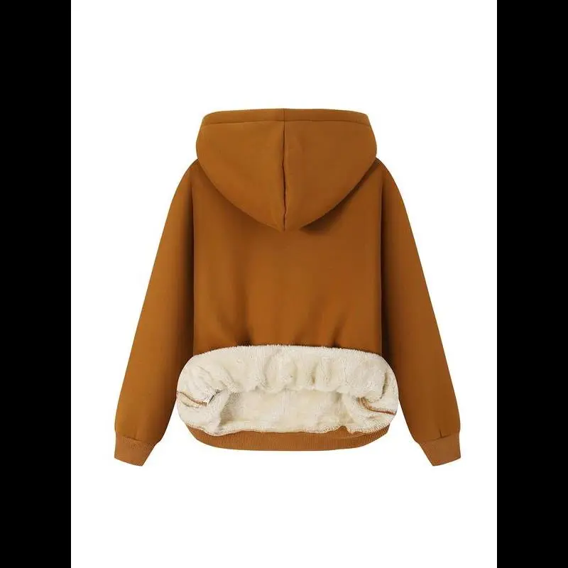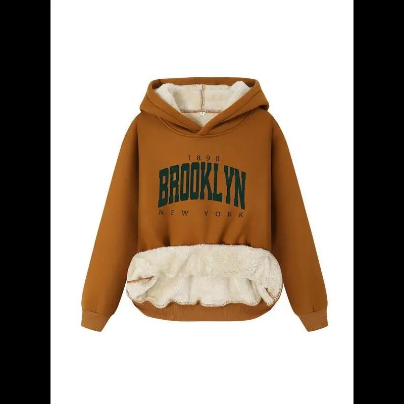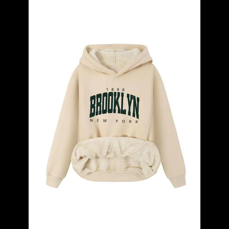 Women's Thermal Lined Letter & Number Print Long Sleeve Plush Hoodie, Casual Graphic Pullover Hooded Sweatshirt for Fall & Winter, Fashion Ladies' Top for Daily Wear