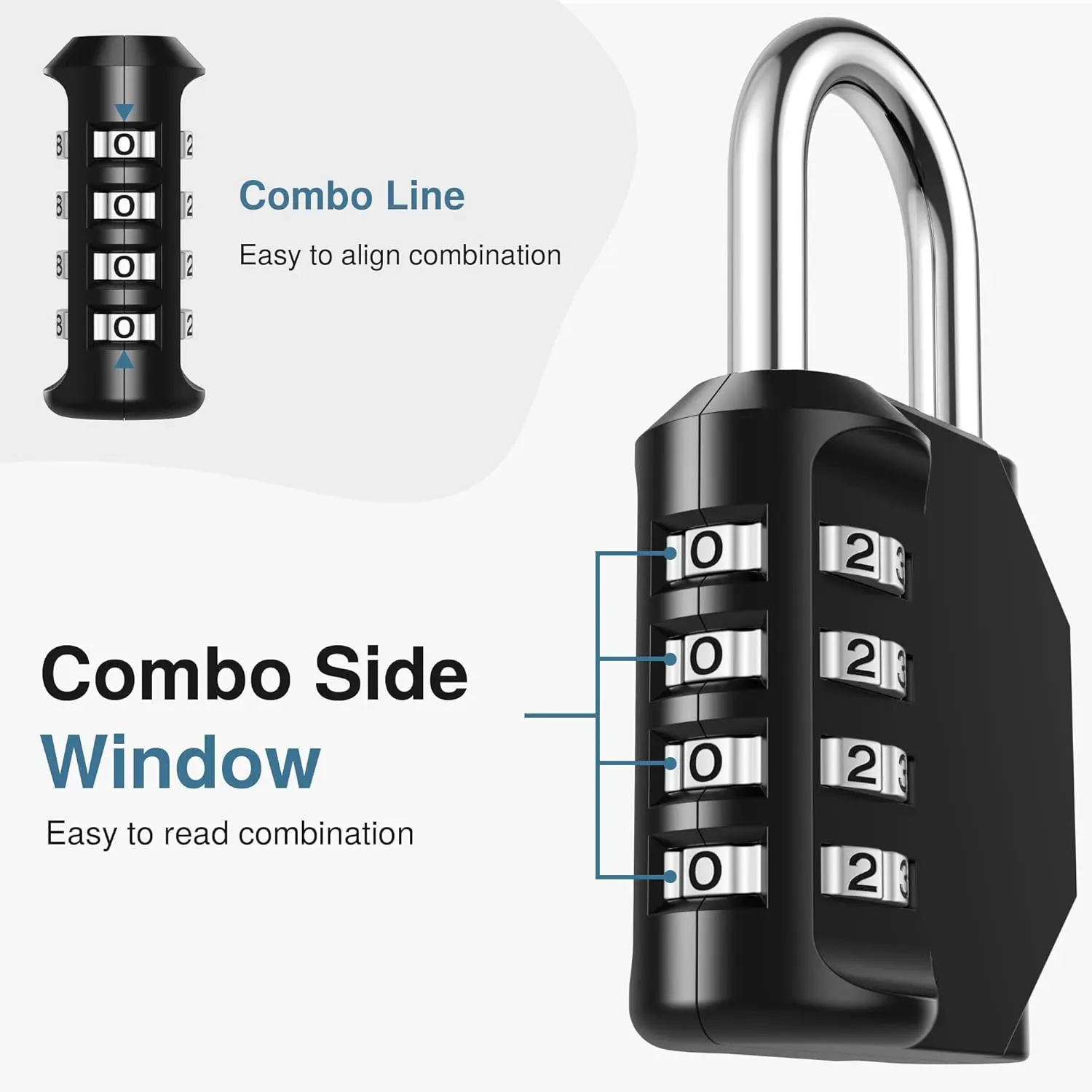Secure your belongings with this 4-digit combination lock offering 10,000 unique codes for enhanced protection. Made from durable zinc alloy with a rust-resistant steel shackle, it resists cutting and corrosion. Easy one-hand operation with resettable password. Compact and portable design. Ideal for gym lockers, gates, toolboxes, fences, cabinets, and storage units.