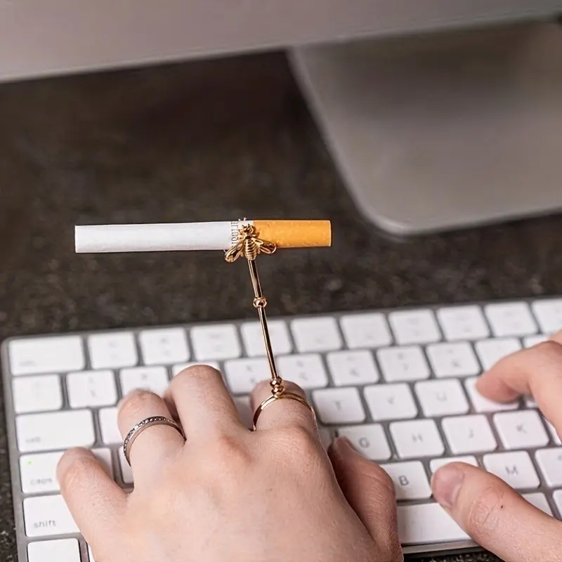 Golden Bee Cigarette Holder Ring, Elegant Finger Cigarette Clip, Fashion Smoking Accessory; Perfect Gift for Dad, Boyfriend, Girlfriend & Best Friend, Romantic Keepsake for Anniversary, Stylish Gift with Ritual Sense for Smokers