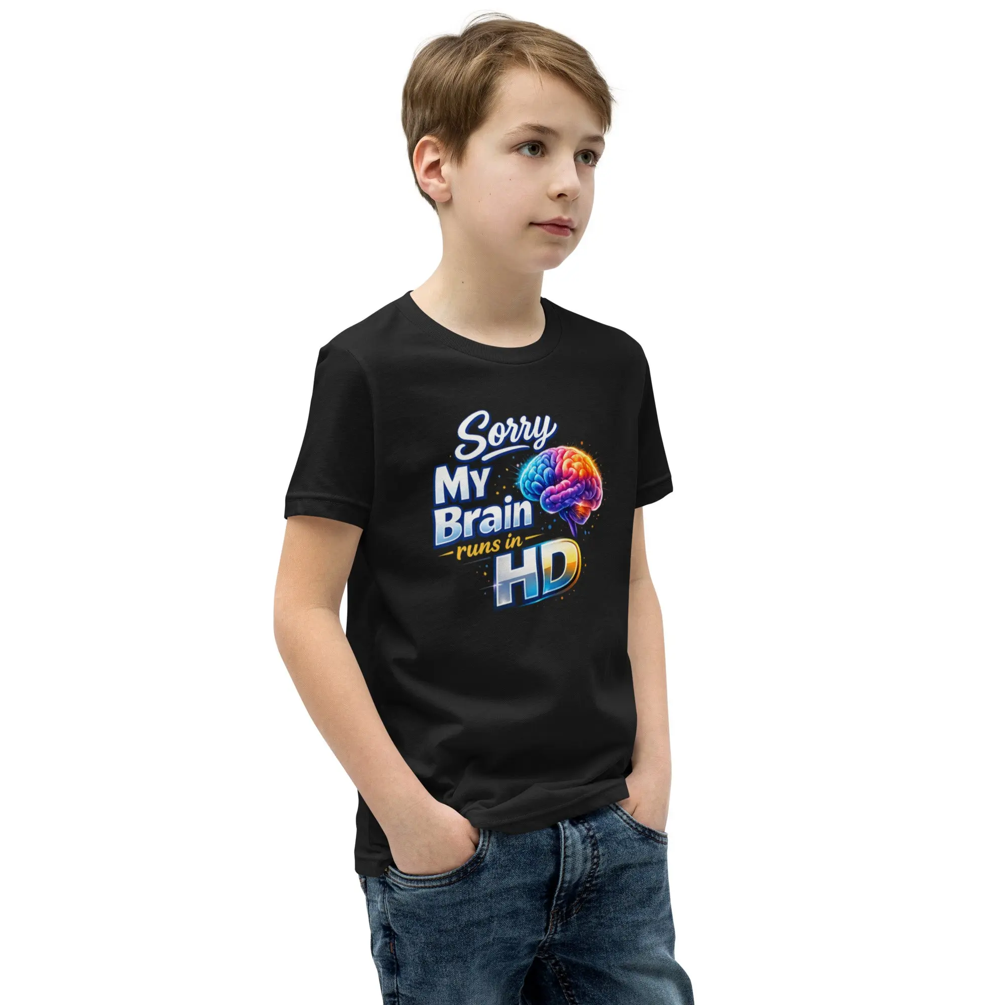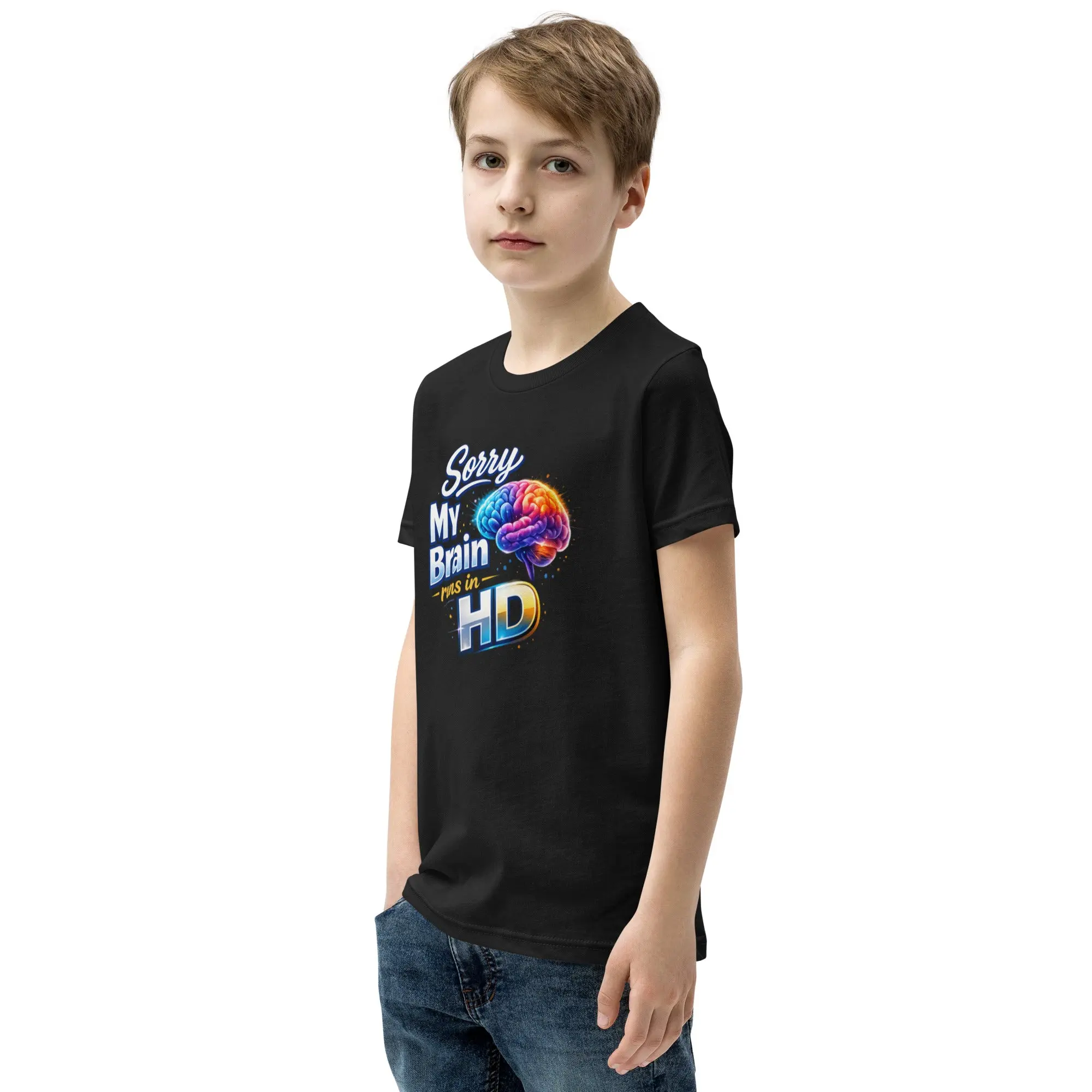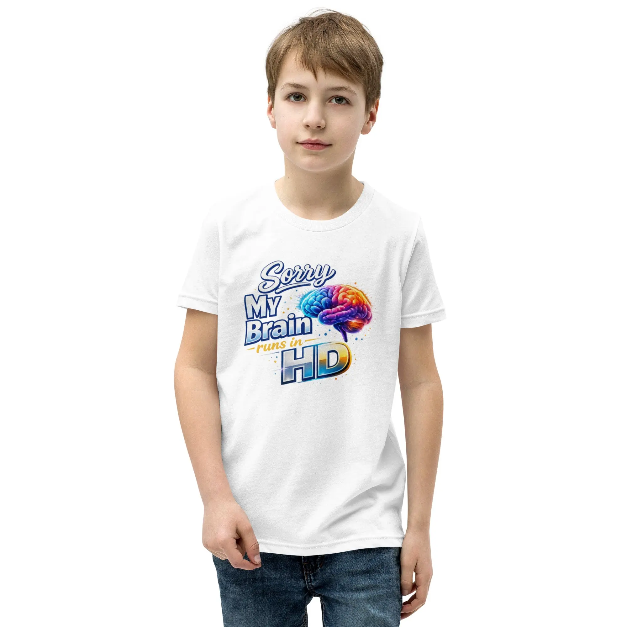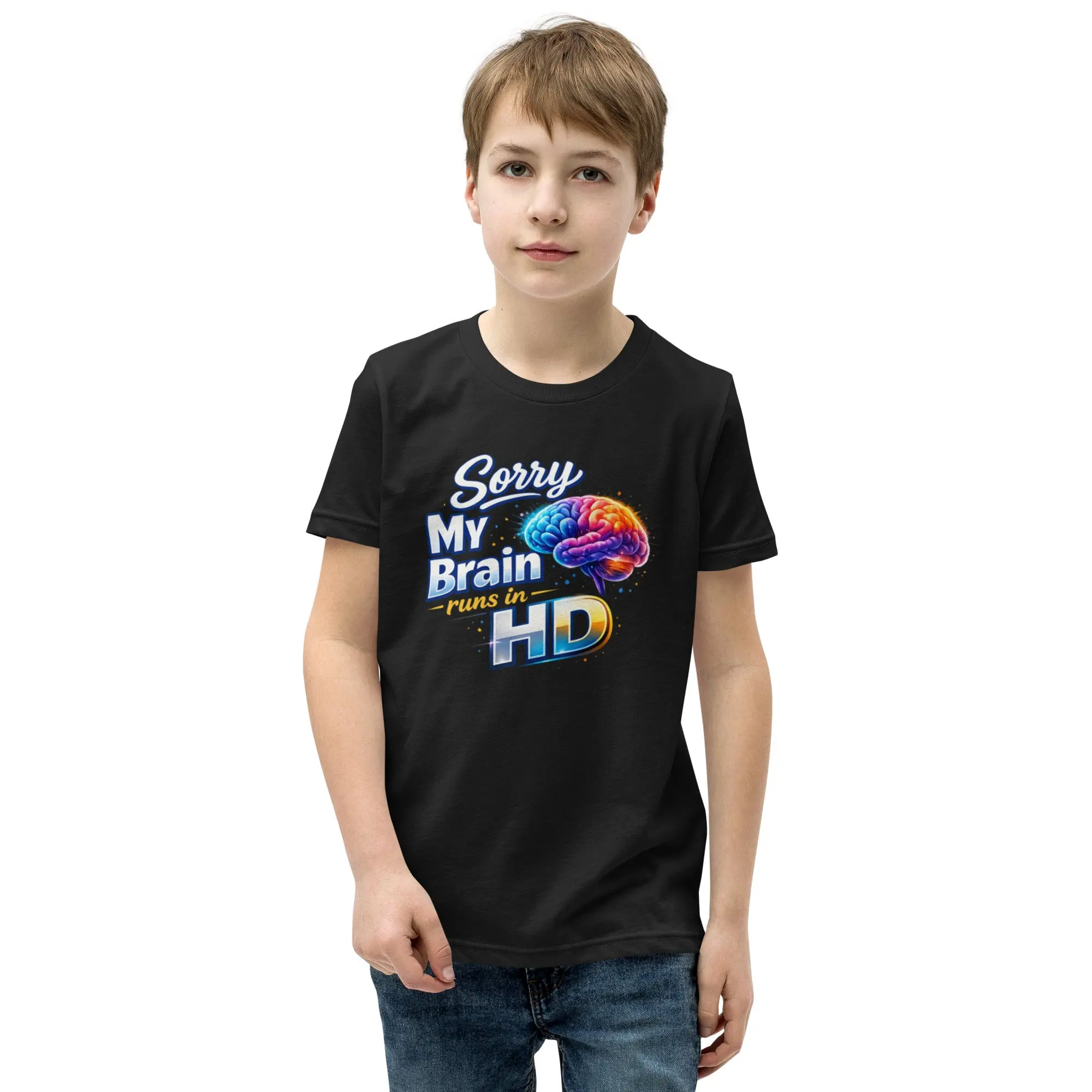 Seeing the world in high definition. This “Sorry, My Brain Runs In HD” tee celebrates the unique awareness and perspective of neurodivergent minds. This is the tee that you've been looking for, and it's bound to become a favorite in any youngster's wardrobe. It's light, soft, and comes with a unique design that stands out from the crowd wherever you go!