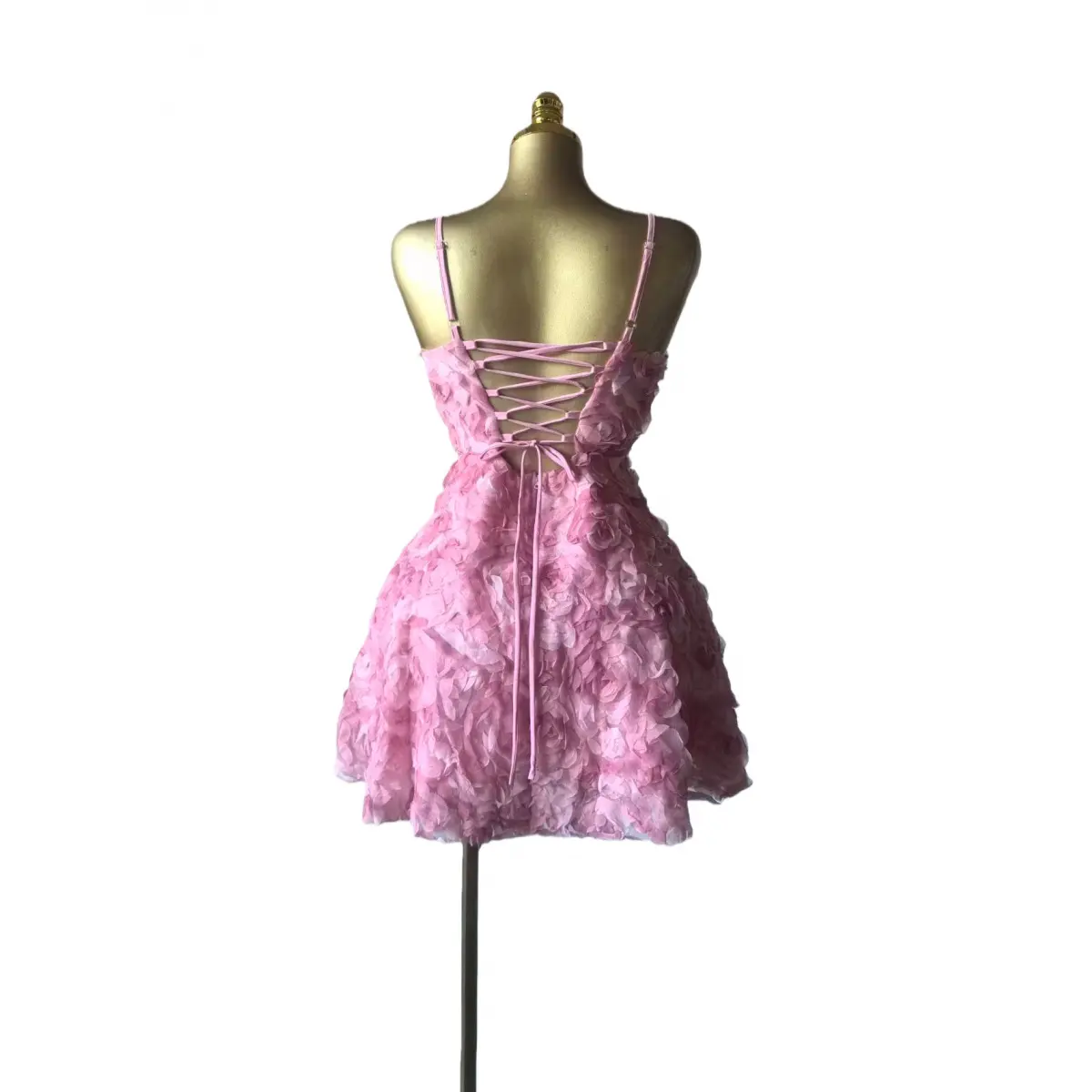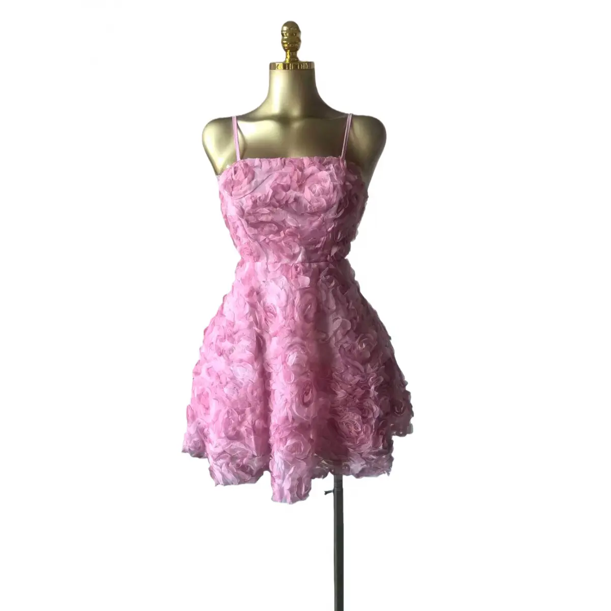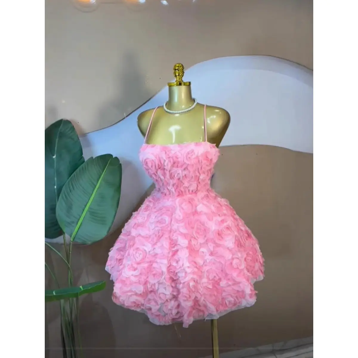 2026 Women's Sweet Strapless Rose Flower Bubble Short Dress Sleeveless Tube Top Waist-Cinching Dress