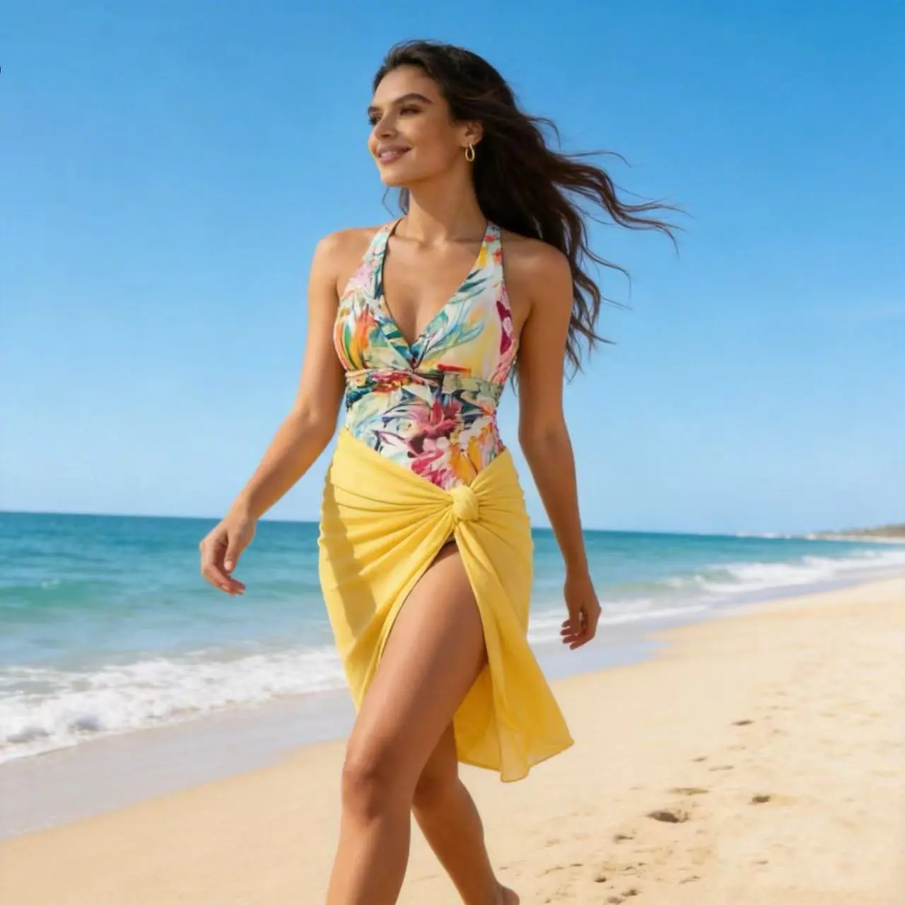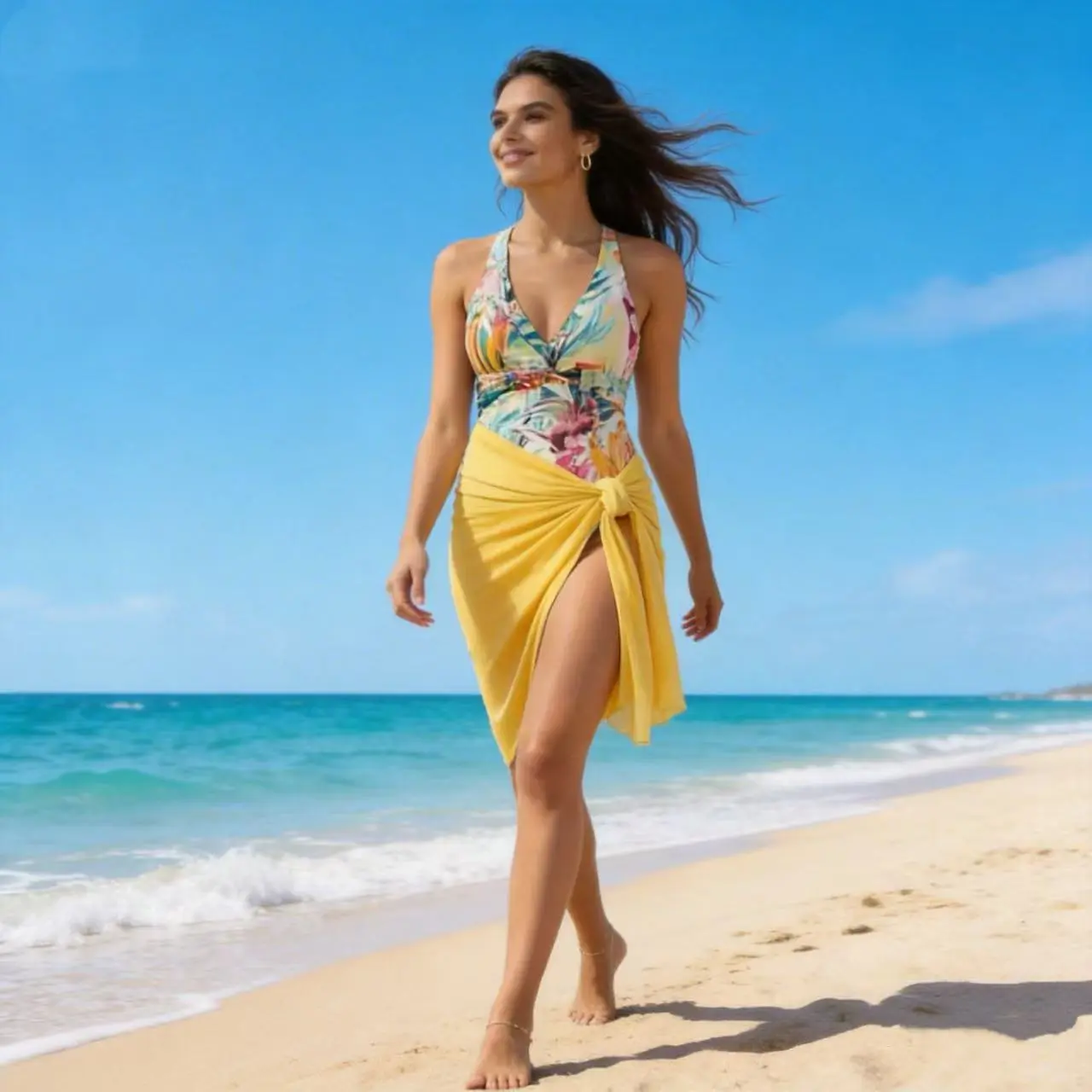 Yellow Sarong Cover-Up: Complements the swimsuit beautifully.