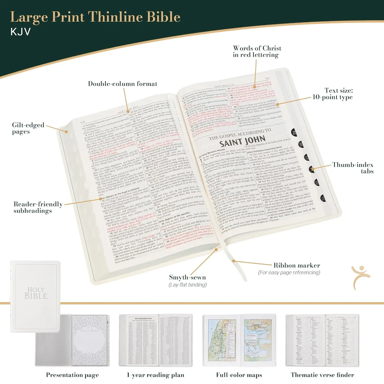 The KJV Thinline Bible includes a thumb index and ribbon marker. It's a perfect travel companion. Tote it to church, work, school, or anywhere. Inspire and encourage family and friends with a beautiful personal Bible. Christian Art Gifts values the Word of God and classic literature.