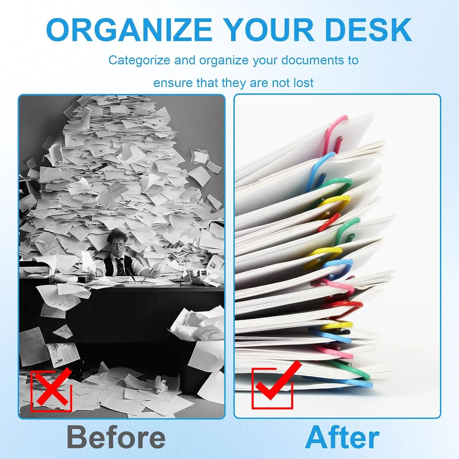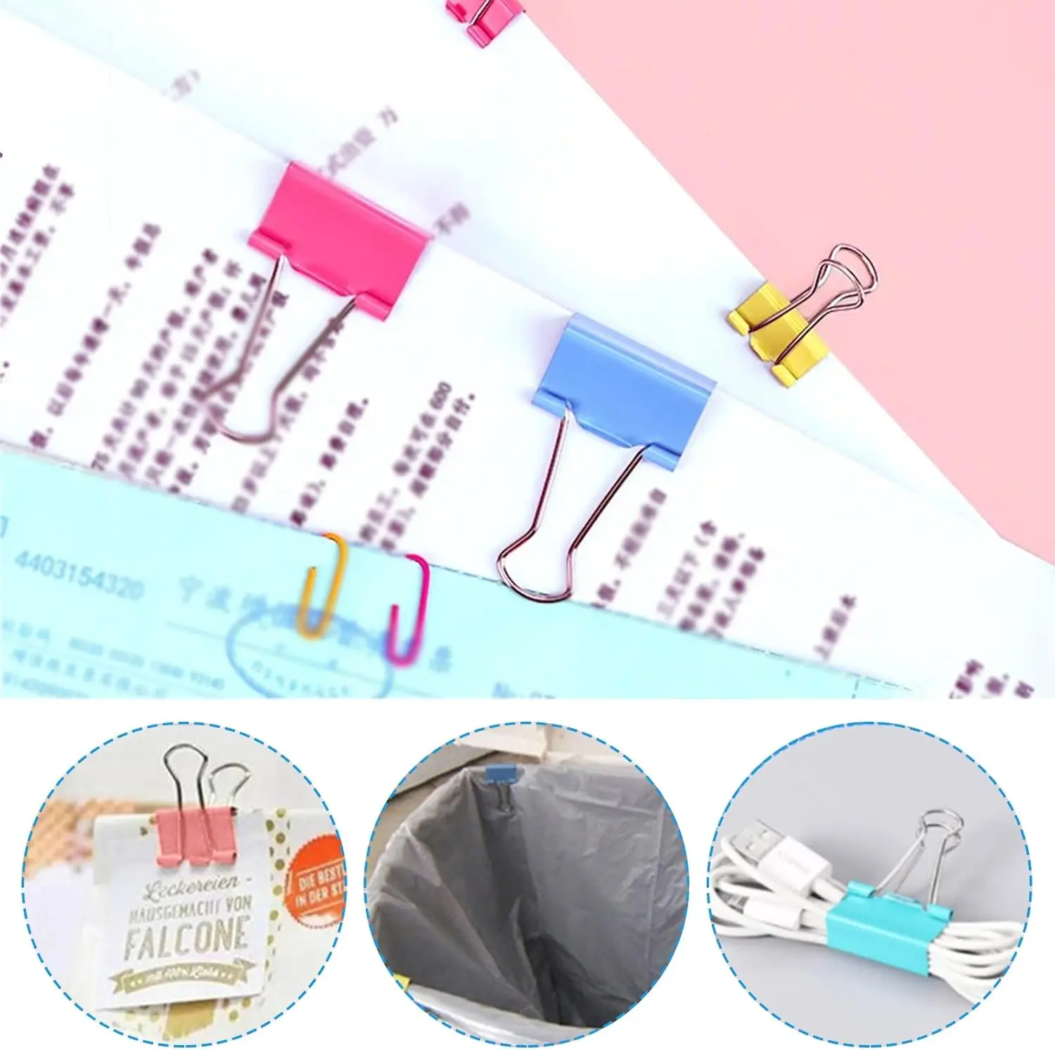 ·【Widely Applicable】The paper clip and binder clips set is perfect for a variety of occasions such as office, home, school, festivals, parties, etc., especially for teachers and students. It can also be used as keychain, keyboard clip, creative games, data cable storage, photo clip, trash bag clip, sealing clip, food spoilage prevention clip, etc.