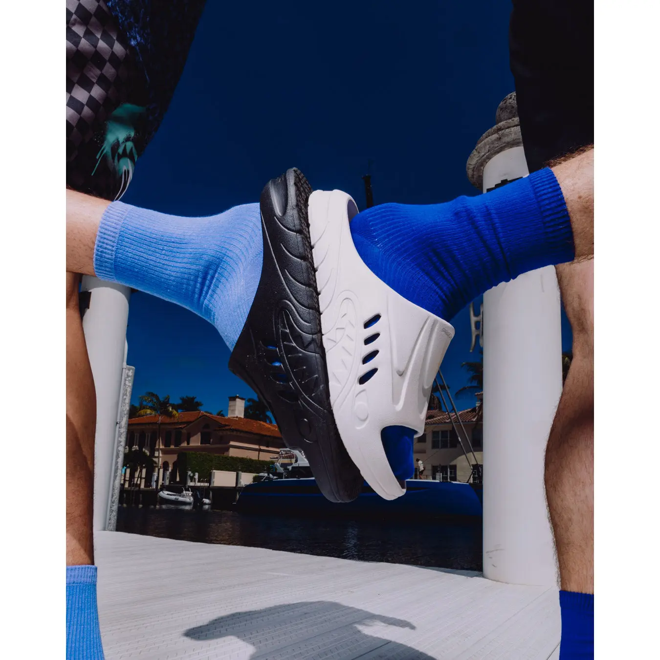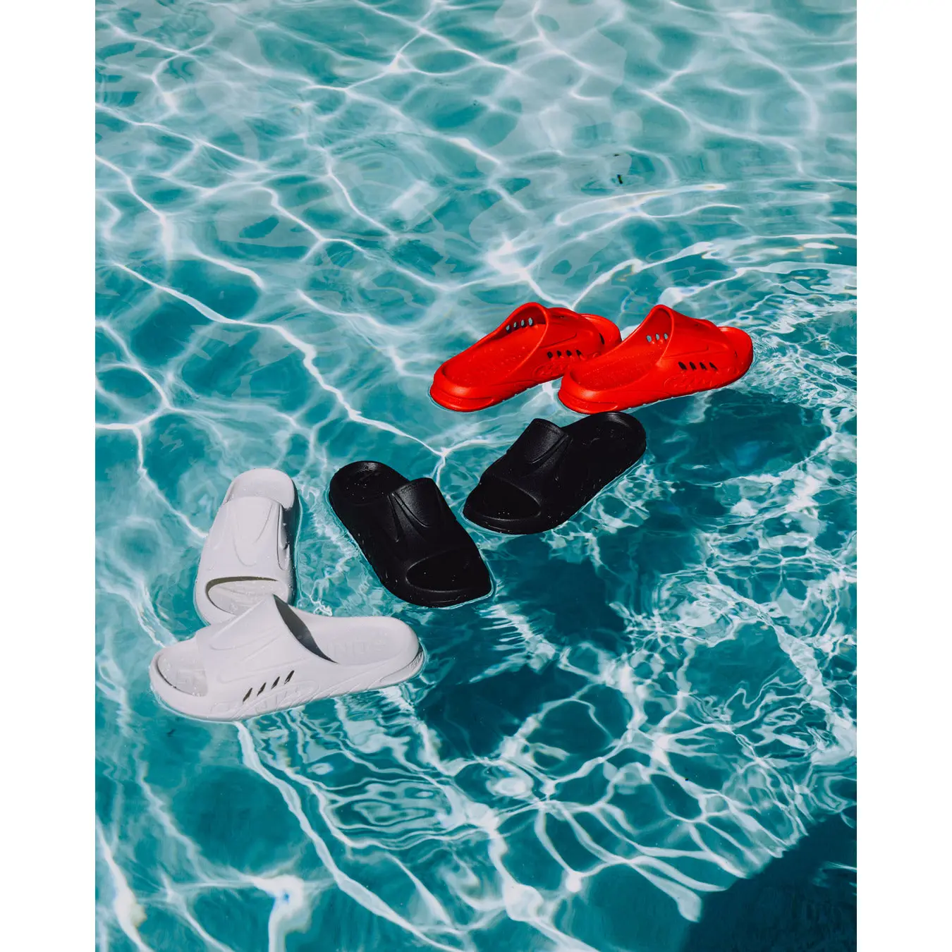 Fashion-forward and lightweight molded EVA slides designed for comfort, support, and style. The custom, sleek sharkmouth design makes these slides ready to wear for any occasion.