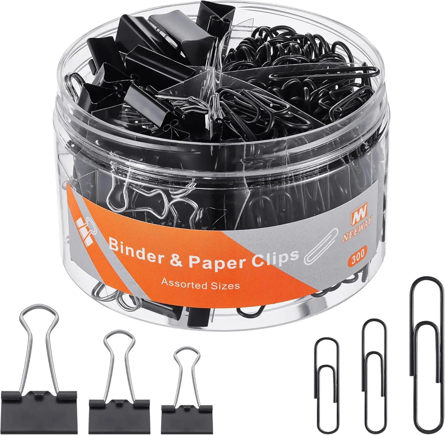 ·Assorted Sizes: This set of 300pcs black paper clips and black binder clips includes various sizes, 110pcs of 28mm small paper clips, 100pcs of 33mm medium paper clips, and 50pcs of 50mm jumbo paper clips, along with 20pcs of 15mm mini binder clips, 12pcs of 19mm small binder clips, and 8pcs of 25mm medium binder clips, catering to your different document organization needs.