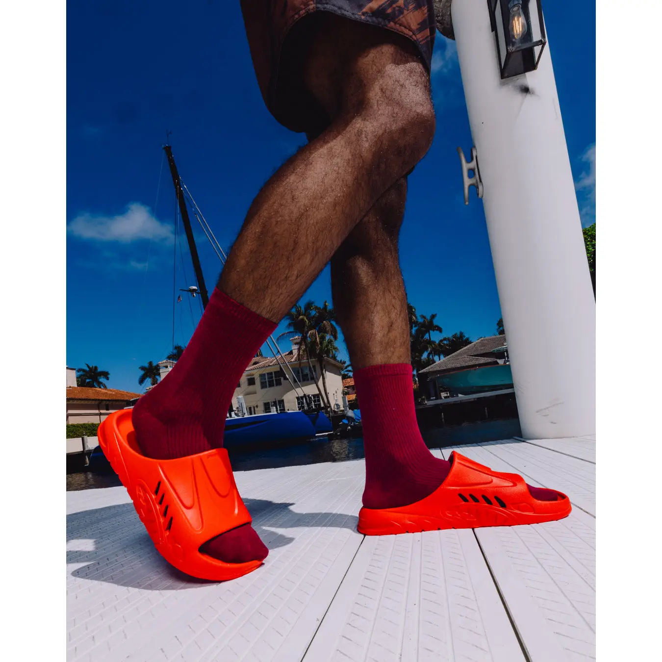 Fashion-forward and lightweight molded EVA slides designed for comfort, support, and style. The custom, sleek sharkmouth design makes these slides ready to wear for any occasion.