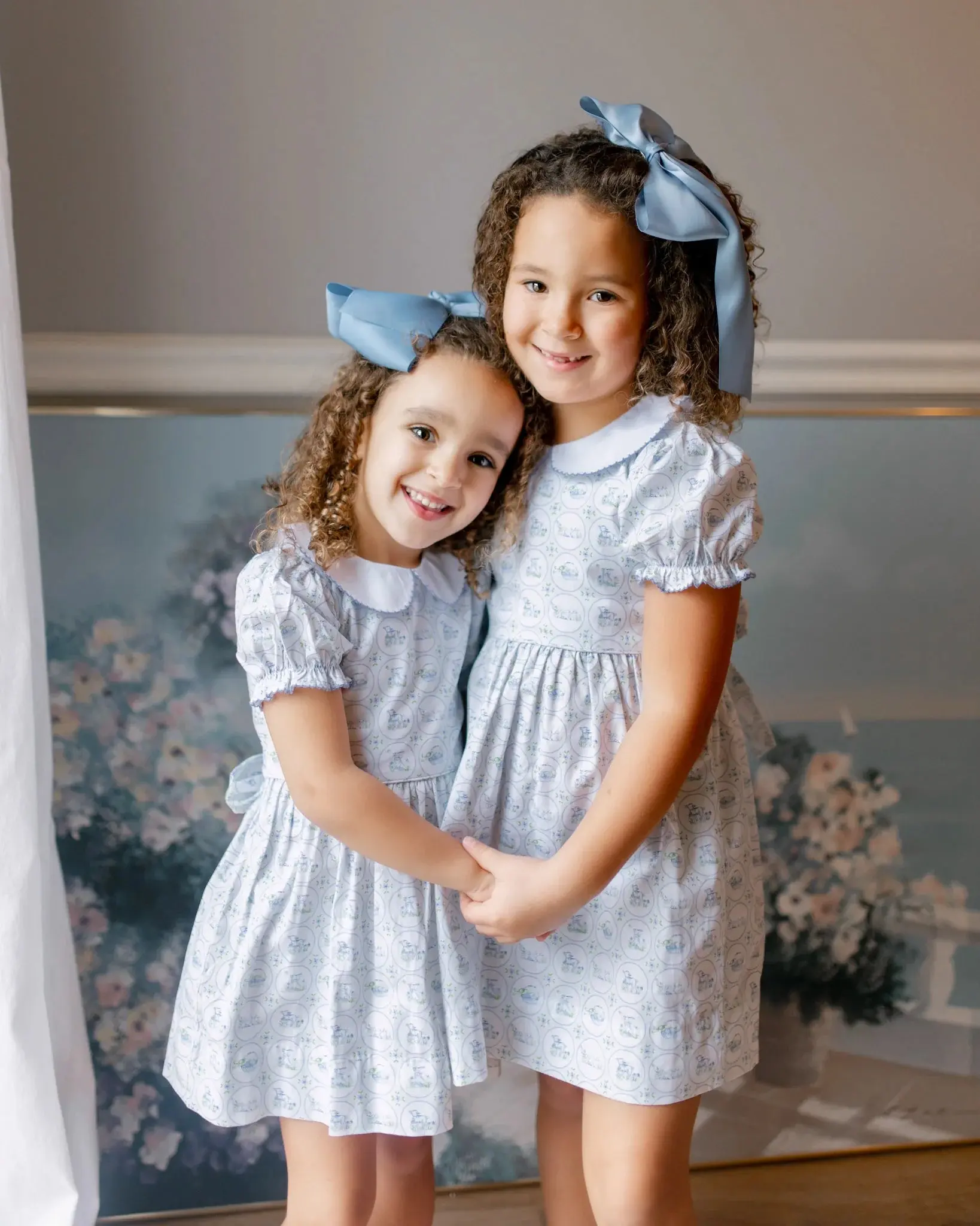 The Easter Toile Dress captures timeless elegance with its vintage-inspired toile print and gracefully draped silhouette. Perfect for Easter portraits, spring brunches, and cherished family moments, this piece brings heirloom-quality charm to your child's wardrobe. Crafted with soft, breathable fabrics, it moves beautifully through the day while maintaining its refined aesthetic. An investment in classic style that transcends seasons.